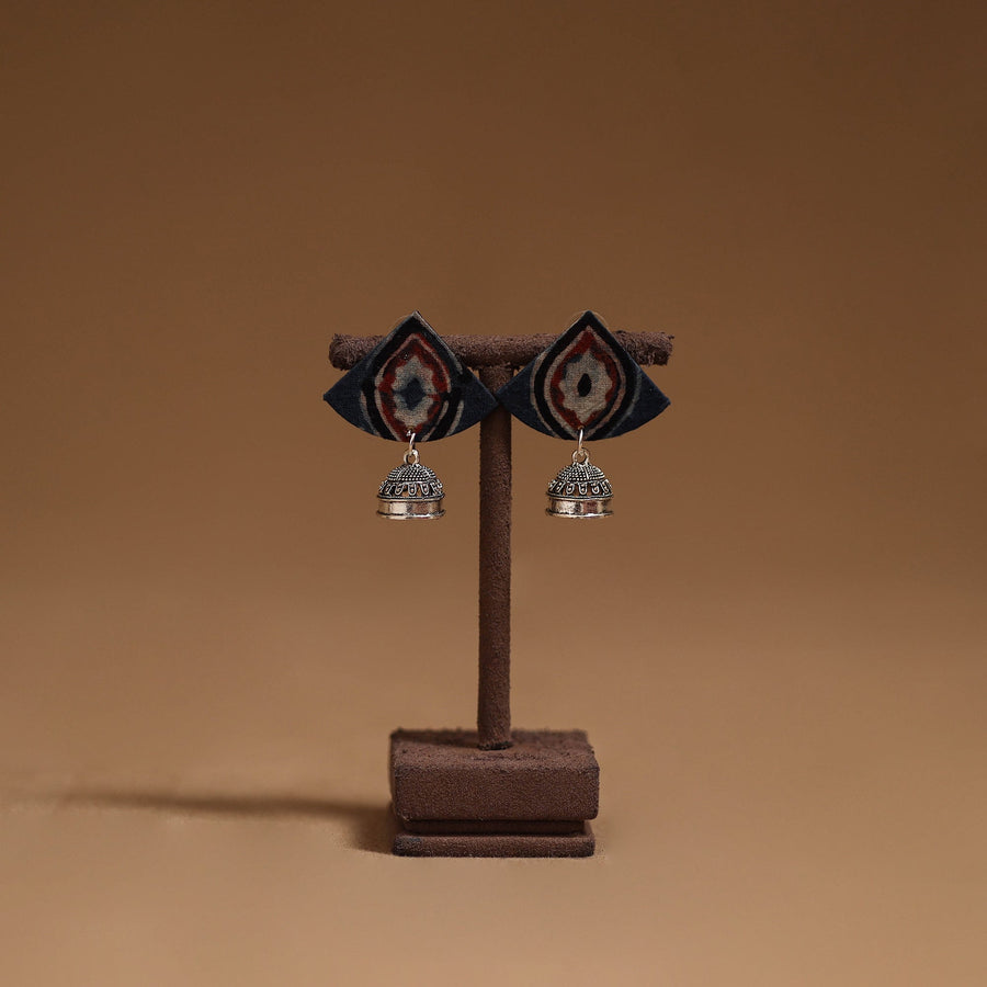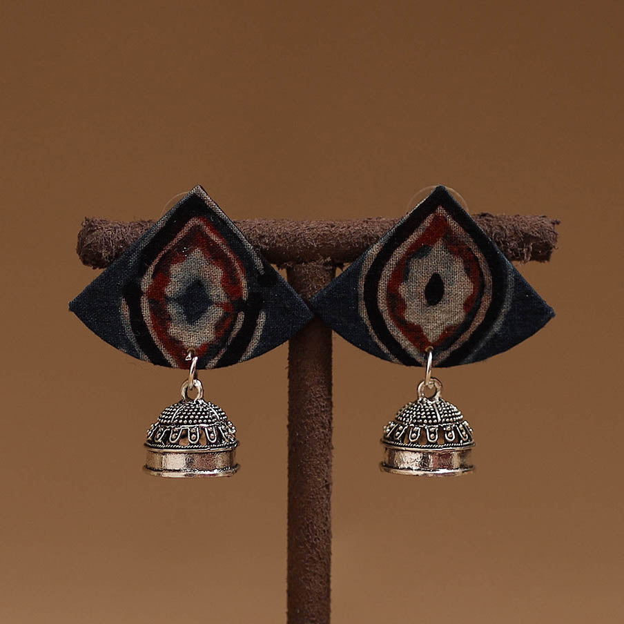 Handmade fabric earrings with german silver jhumki is attached at the end, that enhances its charm. Perfect for everyday wear or special occasions, these earrings blend traditional style with a graceful touch.