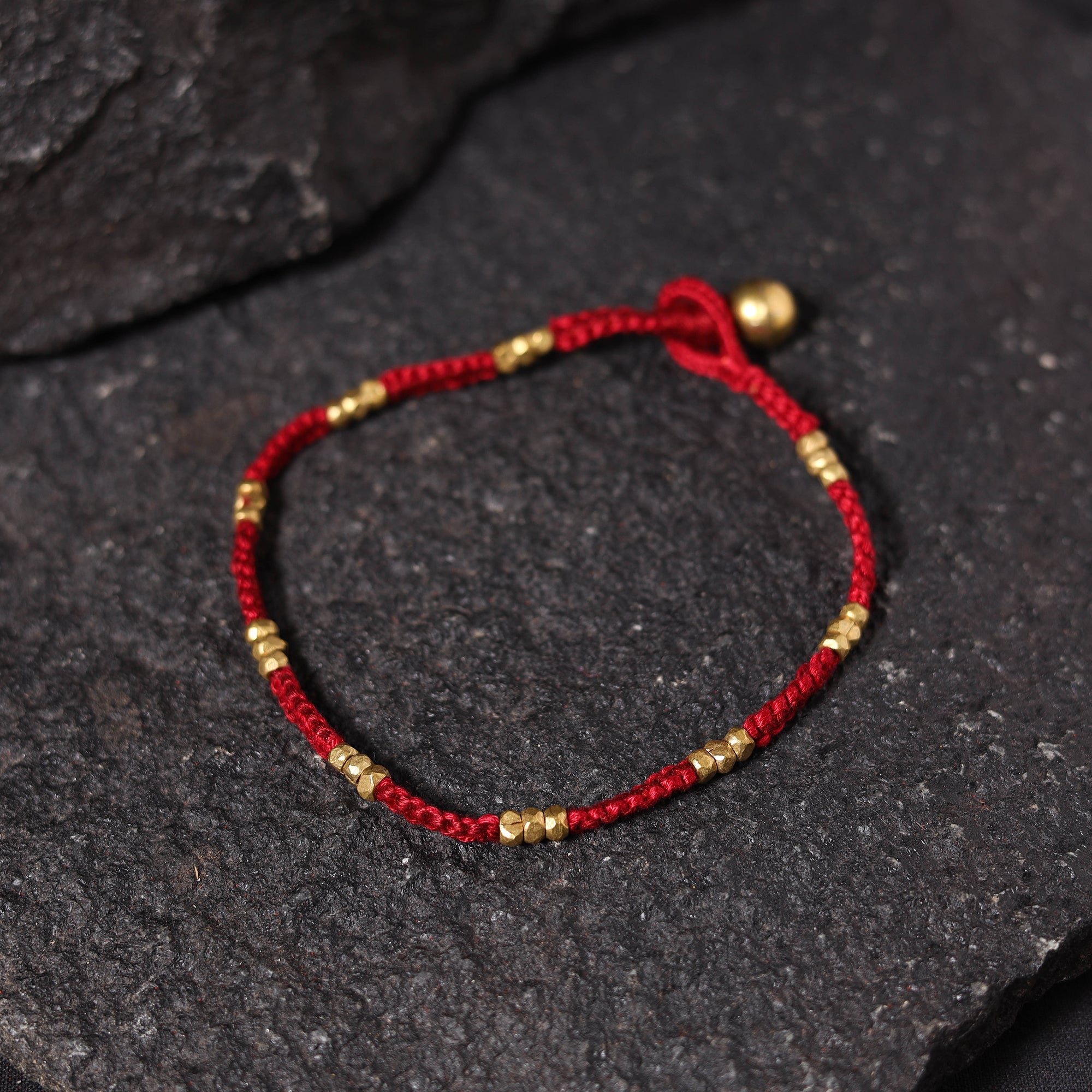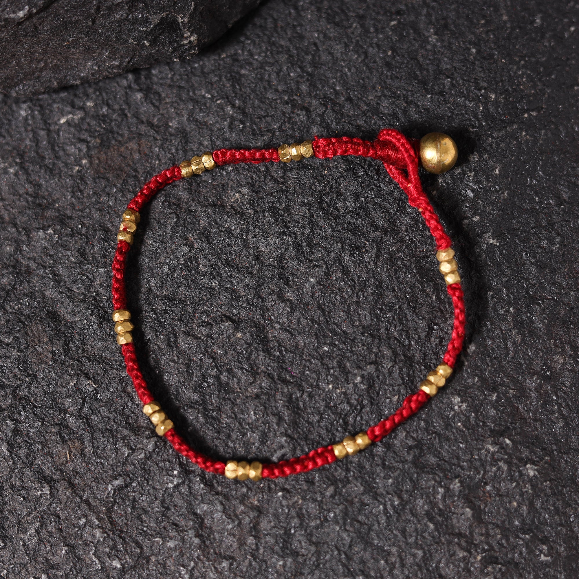Handcrafted brass metal alloy dokra beads and red threadwork anklet, made by tribal artisans using the ancient lost-wax casting technique known as ‘cire perdue’. This traditional method involves replacing wax with molten metal, time-intensive process still practiced in tribal regions of Chhattisgarh and Odisha. Lightweight yet detailed, this anklet adds a rustic, ethnic charm to everyday wear, festive looks, or cultural outfits.