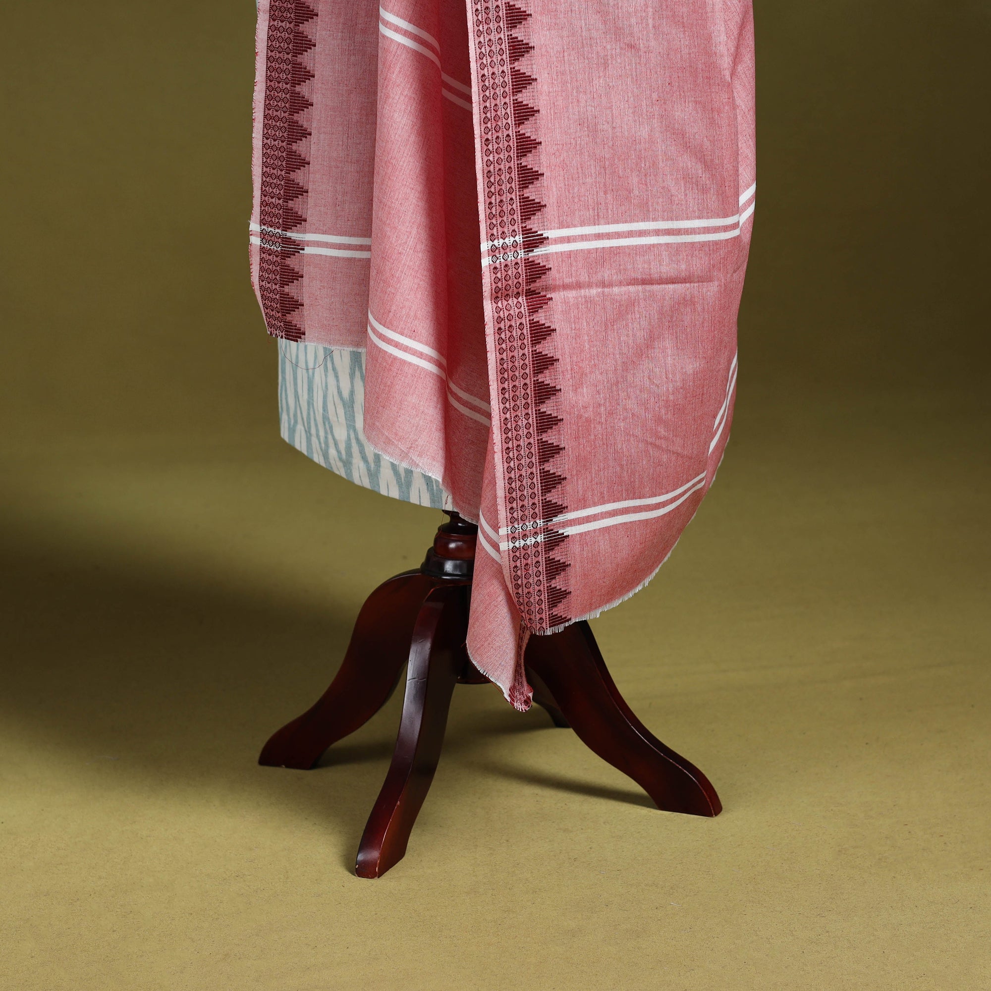 Pink handloom sambalpuri dupatta from Odisha. Crafted by skilled artisans, this dupatta reflects the rich weaving traditions of Eastern India. Made from cotton, it features a traditional temple border and is lightweight and comfortable, making it suitable for everyday wear or special occasions.