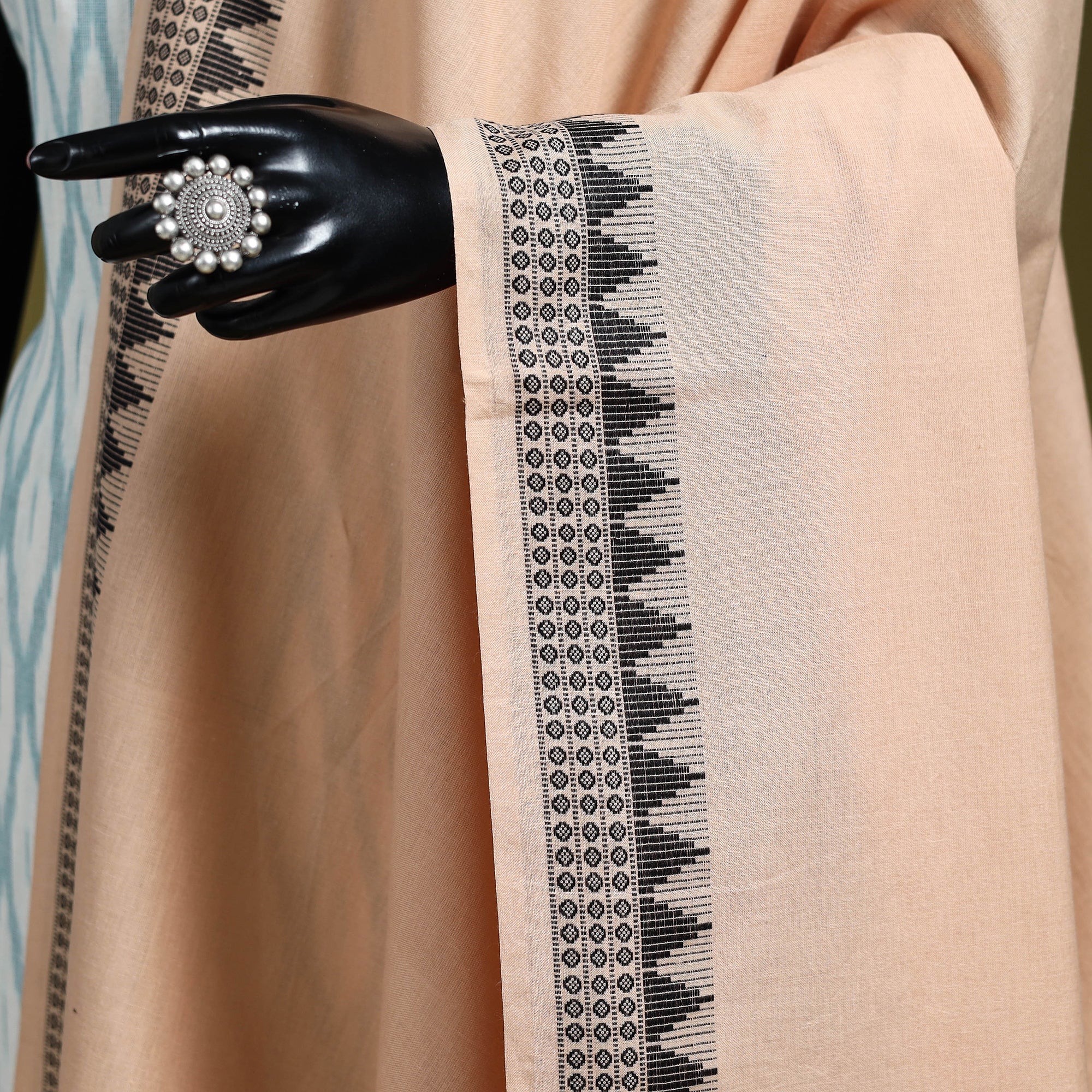 Peach handloom sambalpuri dupatta from Odisha. Crafted by skilled artisans, this dupatta reflects the rich weaving traditions of Eastern India. Made from cotton, it features a traditional temple border and is lightweight and comfortable, making it suitable for everyday wear or special occasions.
