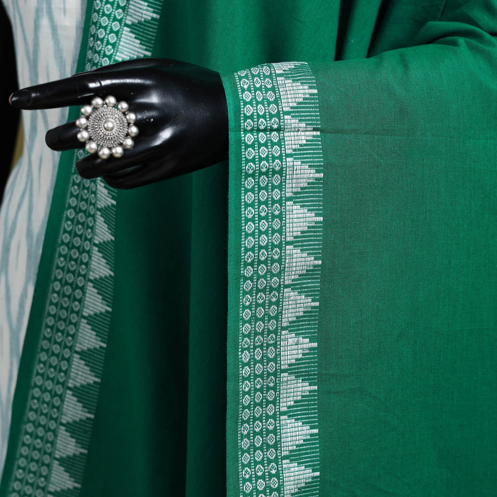 Green handloom sambalpuri dupatta from Odisha. Crafted by skilled artisans, this dupatta reflects the rich weaving traditions of Eastern India. Made from cotton, it features a traditional temple border and is lightweight and comfortable, making it suitable for everyday wear or special occasions.