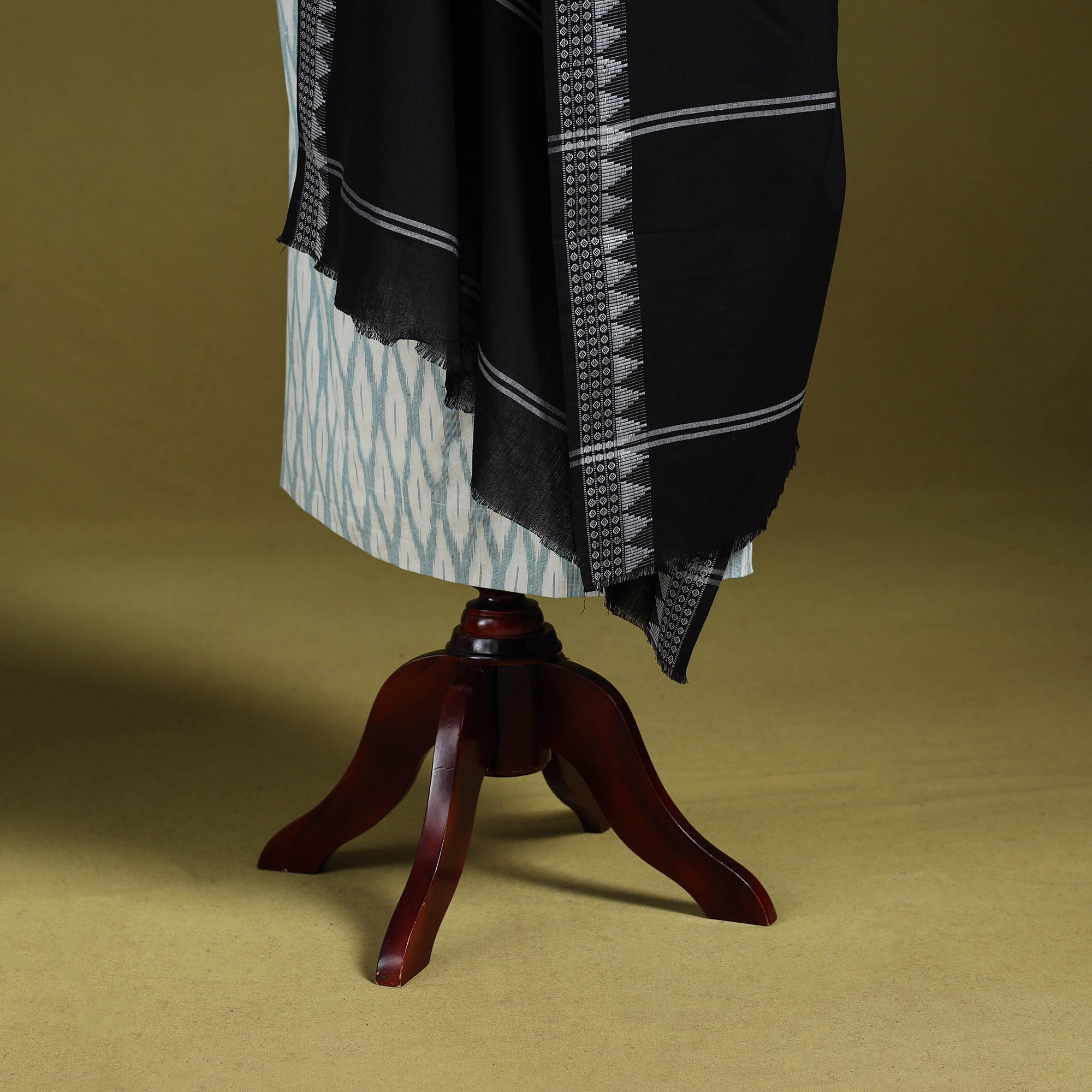 Black handloom sambalpuri dupatta from Odisha. Crafted by skilled artisans, this dupatta reflects the rich weaving traditions of Eastern India. Made from cotton, it features a traditional temple border and is lightweight and comfortable, making it suitable for everyday wear or special occasions.