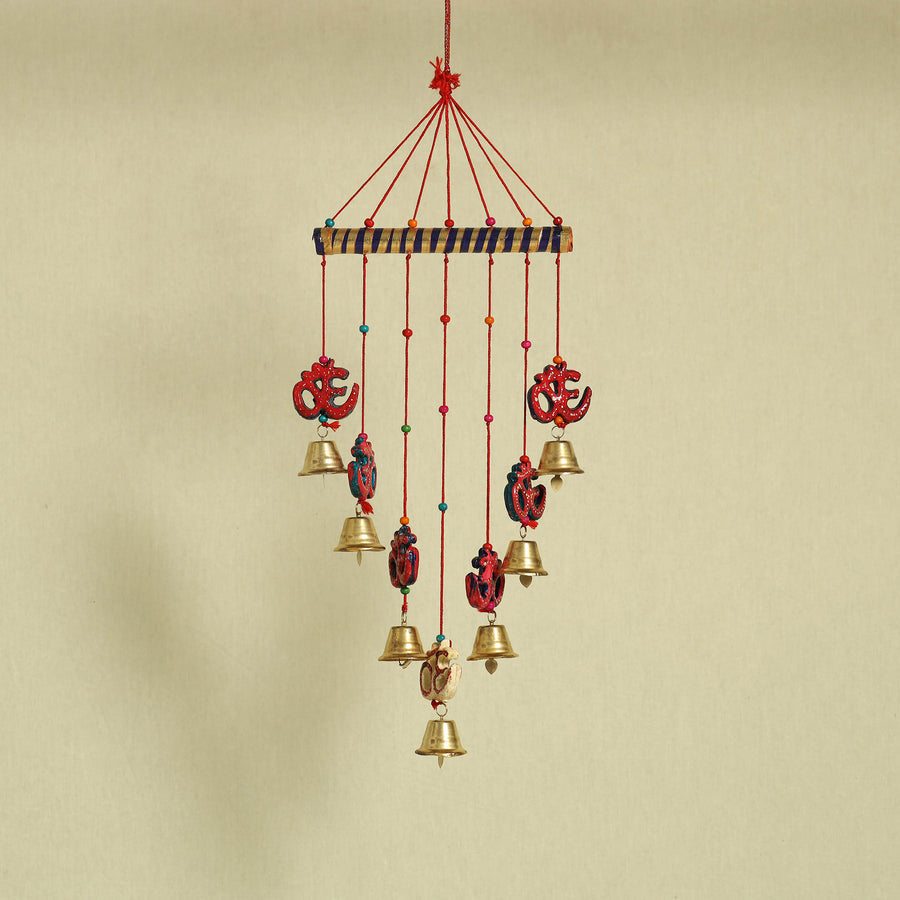 | Material | This hand-painted hanging is decorated with gota and wooden beads, complemented by bells that bring both sound and elegance. Ideal for enhancing festive home decor or gifting on special occasions, it adds colour and charm to doorways, windows, or spiritual corners. |