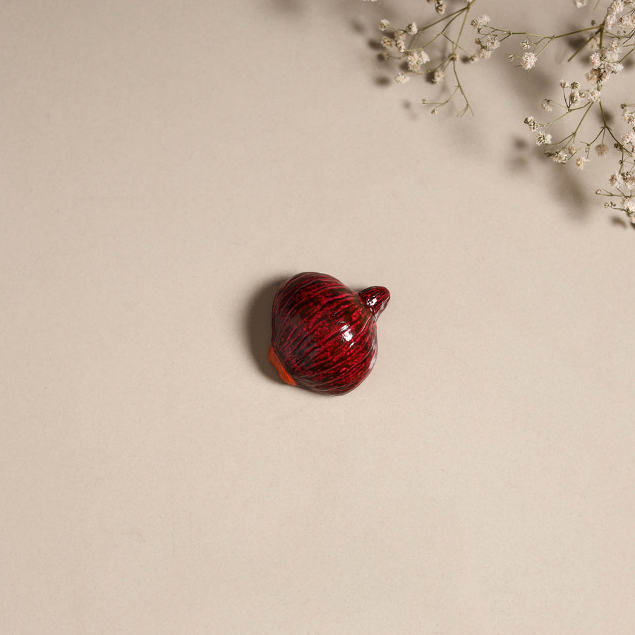 This handpainted terracotta magnet adds a charming touch to your space. Made by master artisan Mahesh Kumar in Lucknow, it is shaped from natural clay and detailed with oil paints. Whether you place it on your fridge or gift it to someone special, it brings a personal, artistic flair.