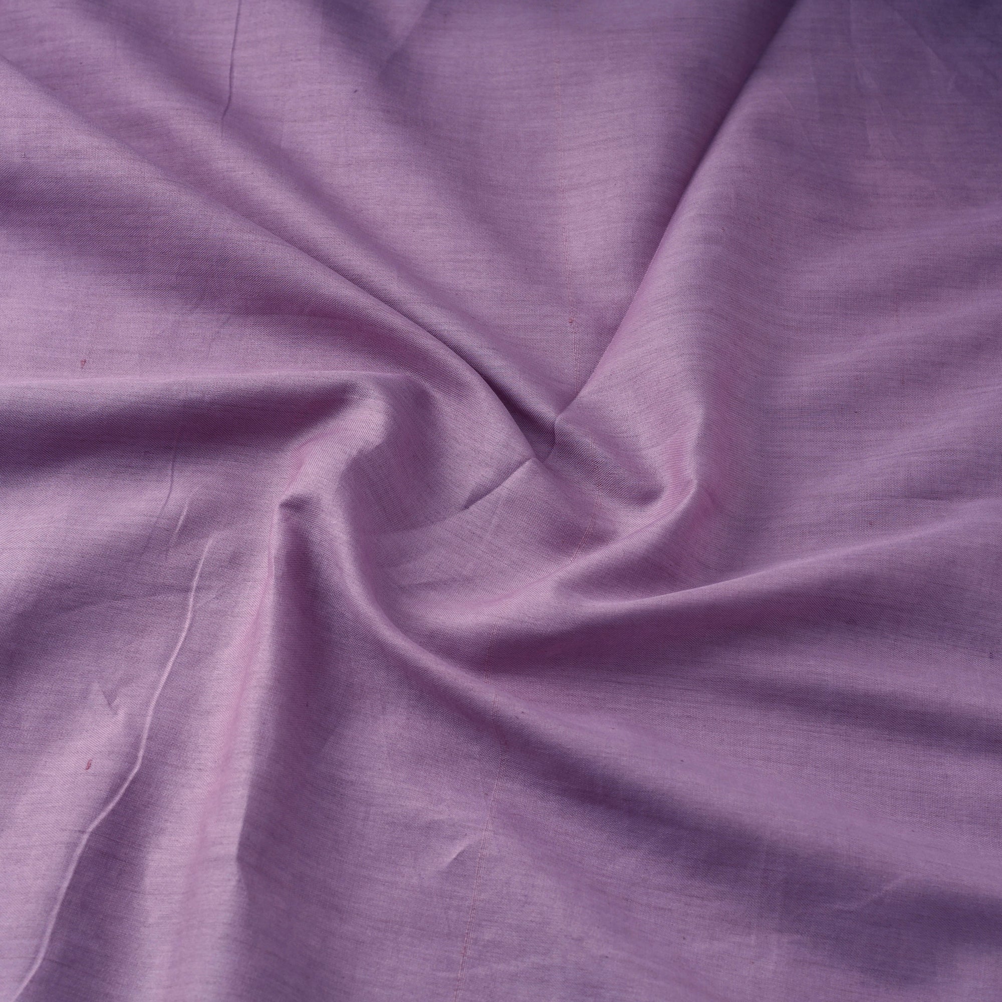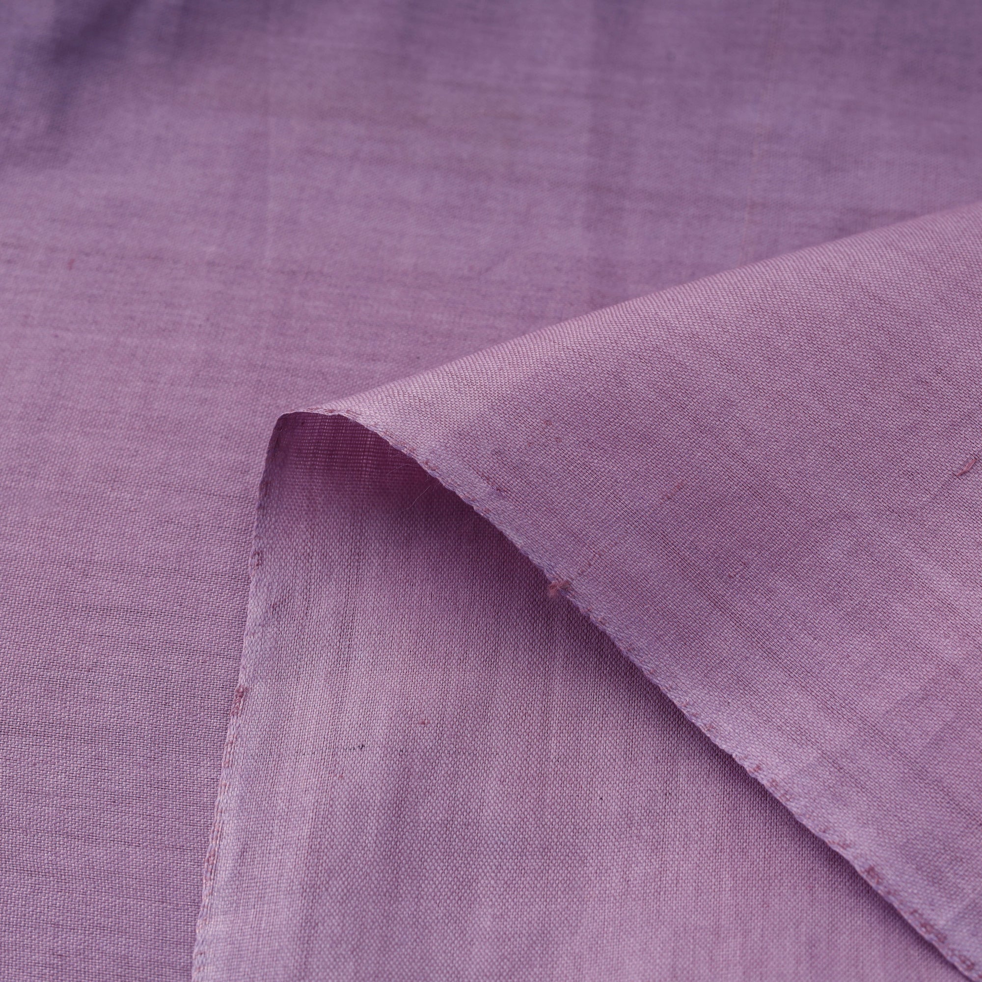 This purple fabric is made from a blend of 50% pure mulberry silk and 50% cotton. Grown organically in Katihar, Bihar, the silk cocoons are hand-reared without any chemicals. The yarn is handspun in Malda and handwoven on a pit loom in Margram, using double taani (warp) and double bharni (weft) techniques. Known for its natural shine and softness, Mulberry silk makes this fabric perfect for elegant and breathable clothing.