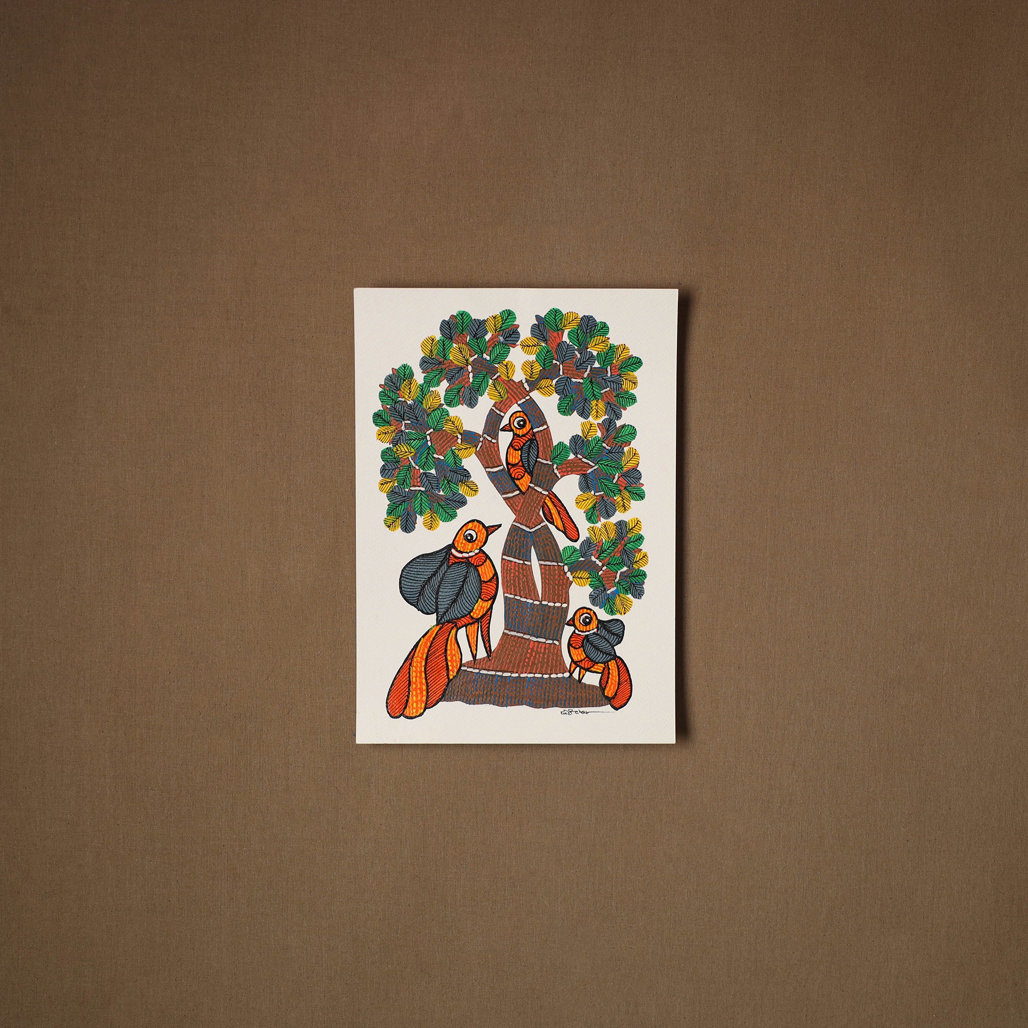 This multicolor handpainted original gond folk art painting from Madhya Pradesh is by artist Choti Tekam. Made with acrylic colours on handmade paper, it showcases a storytelling style where animals, people, and daily life appear in vibrant detail. A wonderful piece for home decor or a thoughtful gift for art lovers.