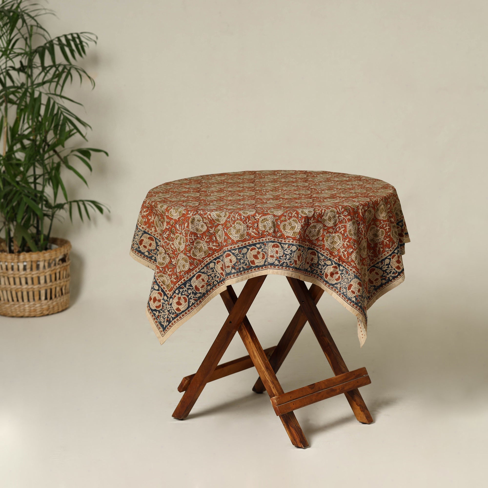 Orange - Original Pedana Kalamkari Block Print Natural Dyed Cotton Table Cover (43 x 42 in) 32