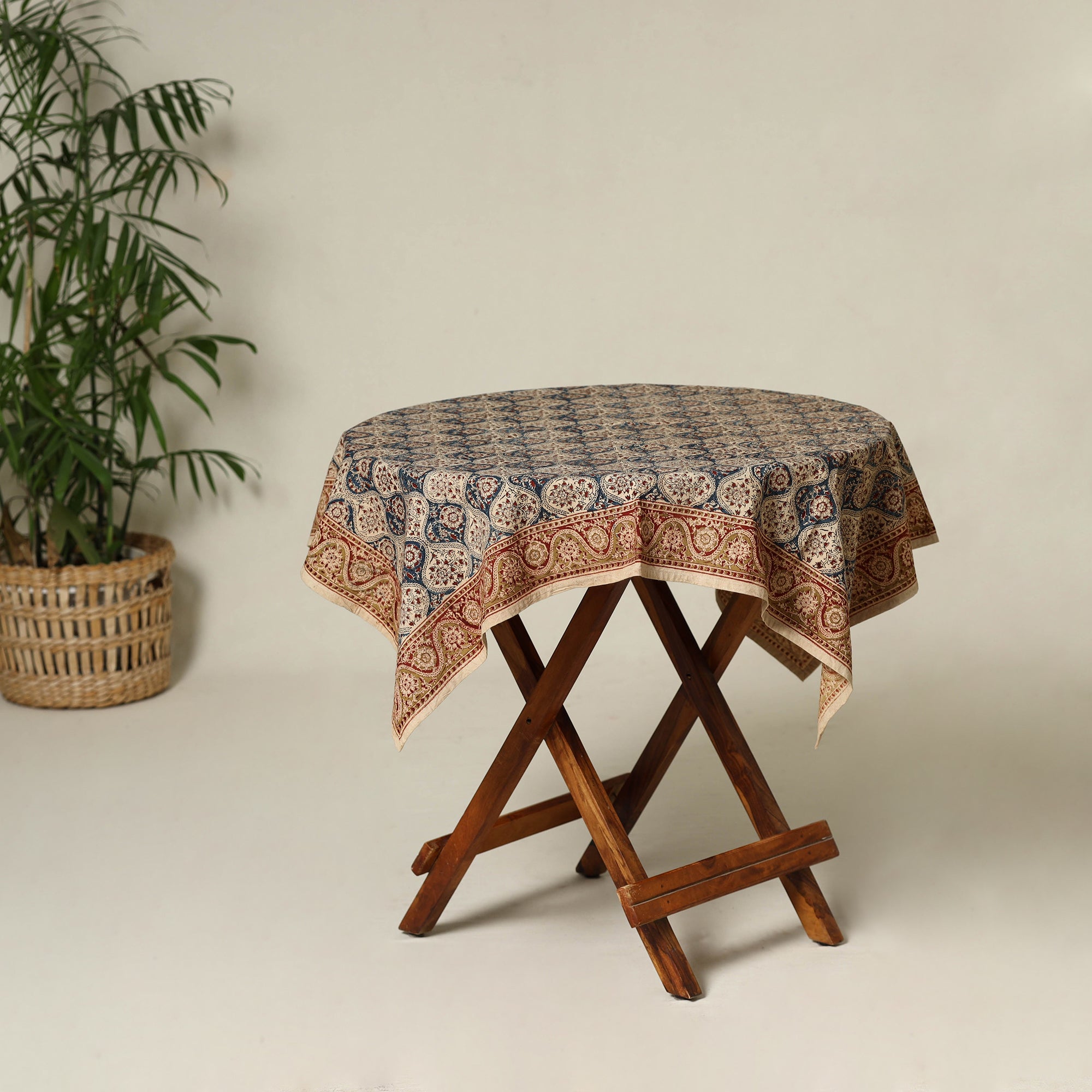 Beige - Original Pedana Kalamkari Block Print Natural Dyed Cotton Table Cover (43 x 42 in) 38
