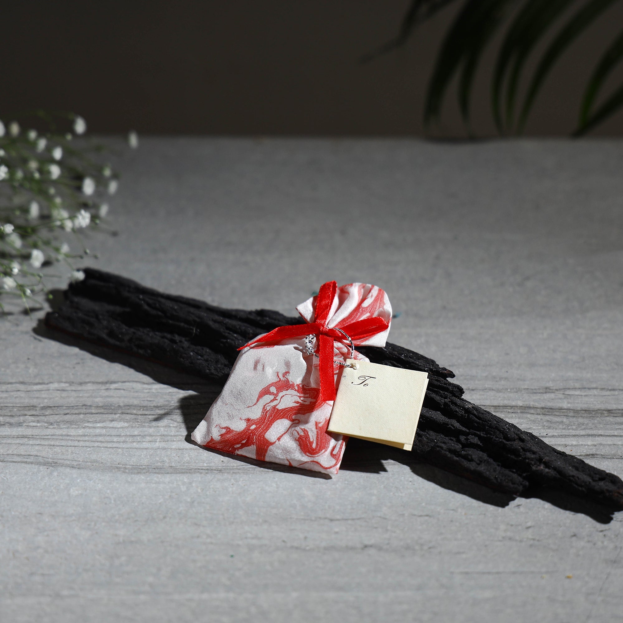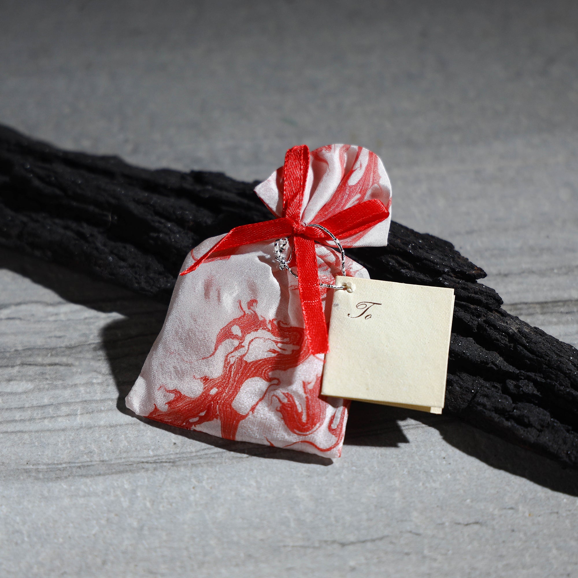 Perfumed sachet is made using fragrant herbs and essential oils, wrapped in 100% hand-marbled silk fabric. It can be used as a freshener and deodoriser without untying the ribbon.