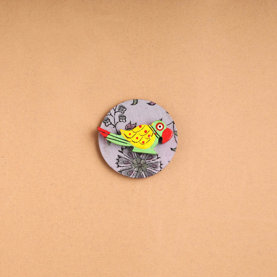 Elevate your fridge or magnetic surface with this handmade fabart wooden magnet, featuring a beautiful handpainted parrot motif. Crafted by skilled artisans, Made from durable wood and cotton fabric. This unique piece is perfect for displaying notes, photos, or artwork in style.