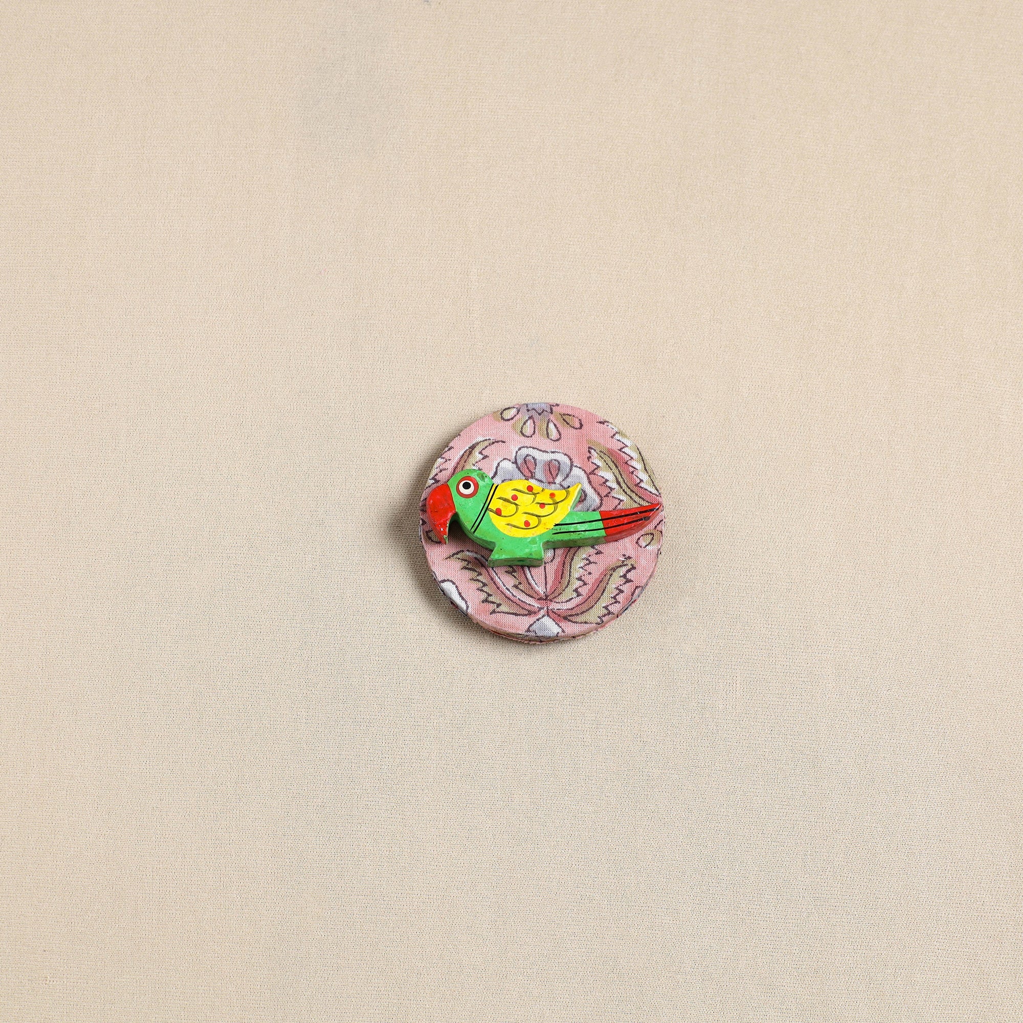 Enhance your space with this handmade fabart wooden magnet. Using durable wood and cotton fabric, each piece is a fusion of tradition and modern décor. Perfect for holding notes, photos, or adding a unique charm to your kitchen. Handmade with eco-friendly materials.