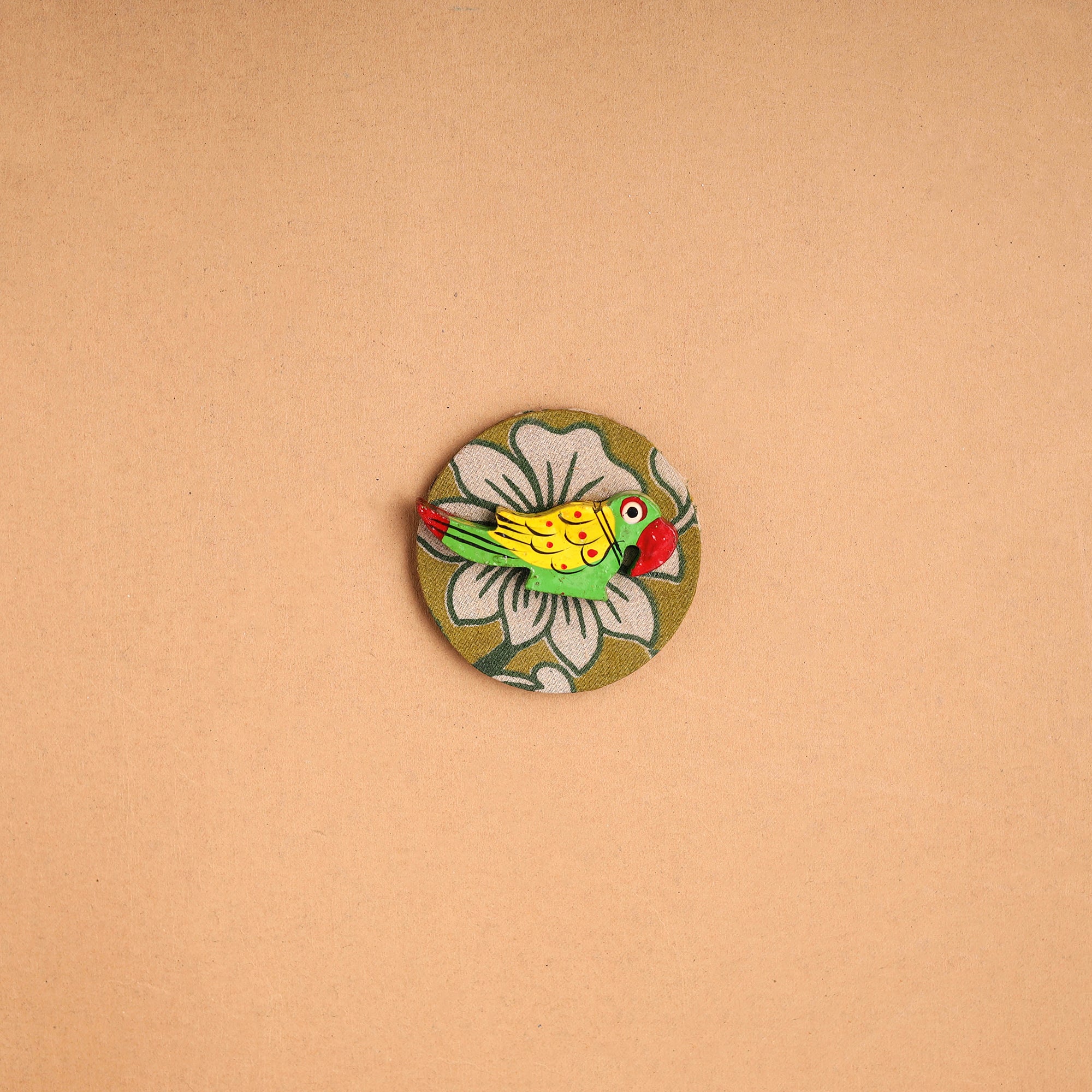 Elevate your fridge or magnetic surface with this handmade fabart wooden magnet, featuring a beautiful handpainted parrot motif. Crafted by skilled artisans, Made from durable wood and cotton fabric. This unique piece is perfect for displaying notes, photos, or artwork in style.