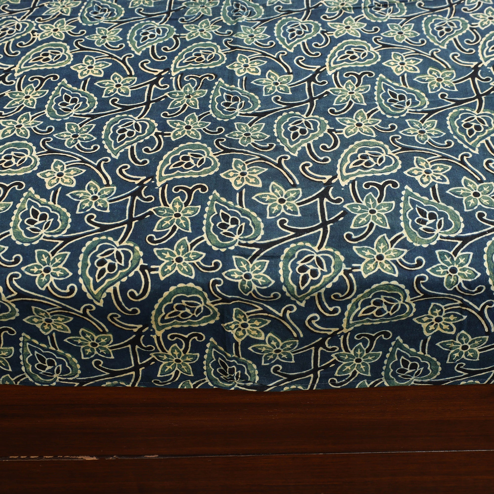 This patchwork blue cotton double ajrakh bed sheet set brings a touch of Gujarat and Rajasthan’s rich cultural heritage into your home. The vibrant patchwork and hand block print design, made from natural-dyed cotton, make this bed sheet a unique piece of artisanal craftsmanship. Perfect for elegant home decor, this set includes matching pillow covers.