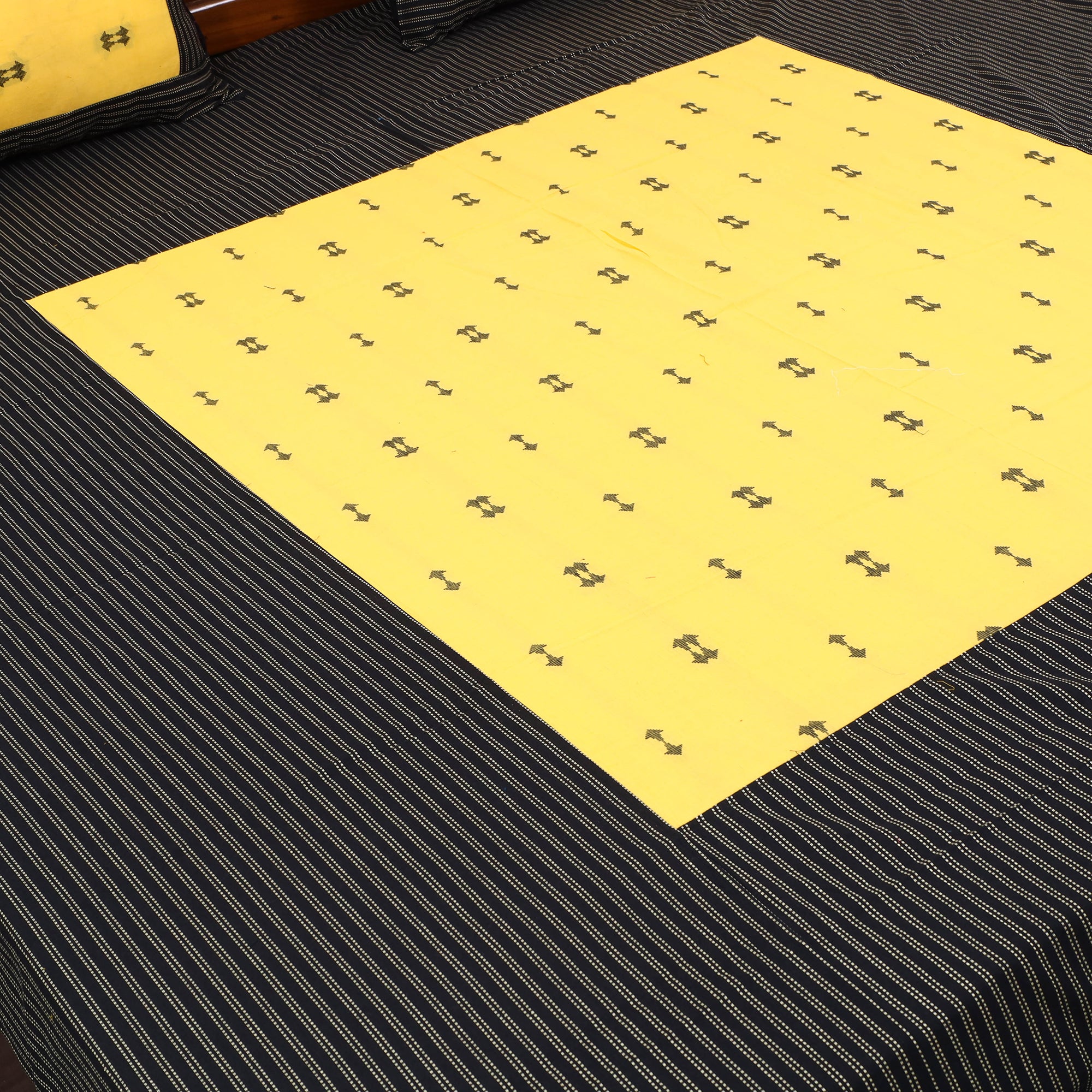 Elevate your bedroom decor with this beautifully crafted black patchwork cotton double jacquard bed sheet set, showcasing intricate patchwork designs along with coordinated pillow covers. Made from soft pure cotton, this jacquard bed sheet set perfectly blends style and comfort, adding a touch of elegance to your space.