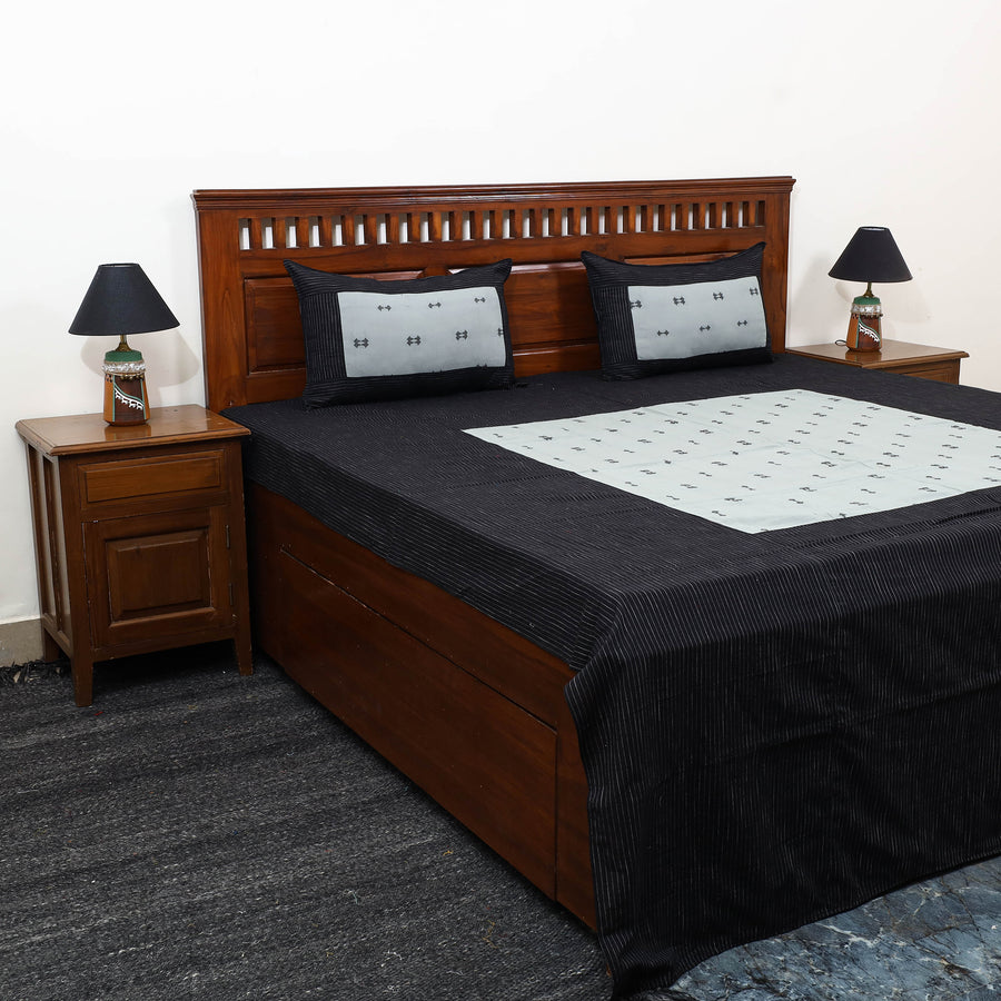 Black - Patchwork Cotton Double Jacquard Bed Sheet Set 09