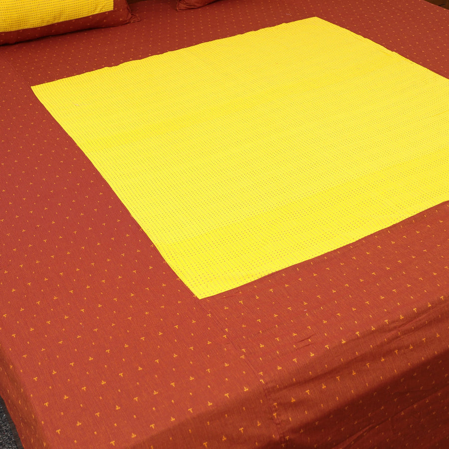 Enhance your bedroom with this orange patchwork cotton double jacquard bedsheet set, featuring patchwork and matching pillow covers. Made from cotton, this jacquard bed set combines style and comfort, bringing a touch of elegance to any space.