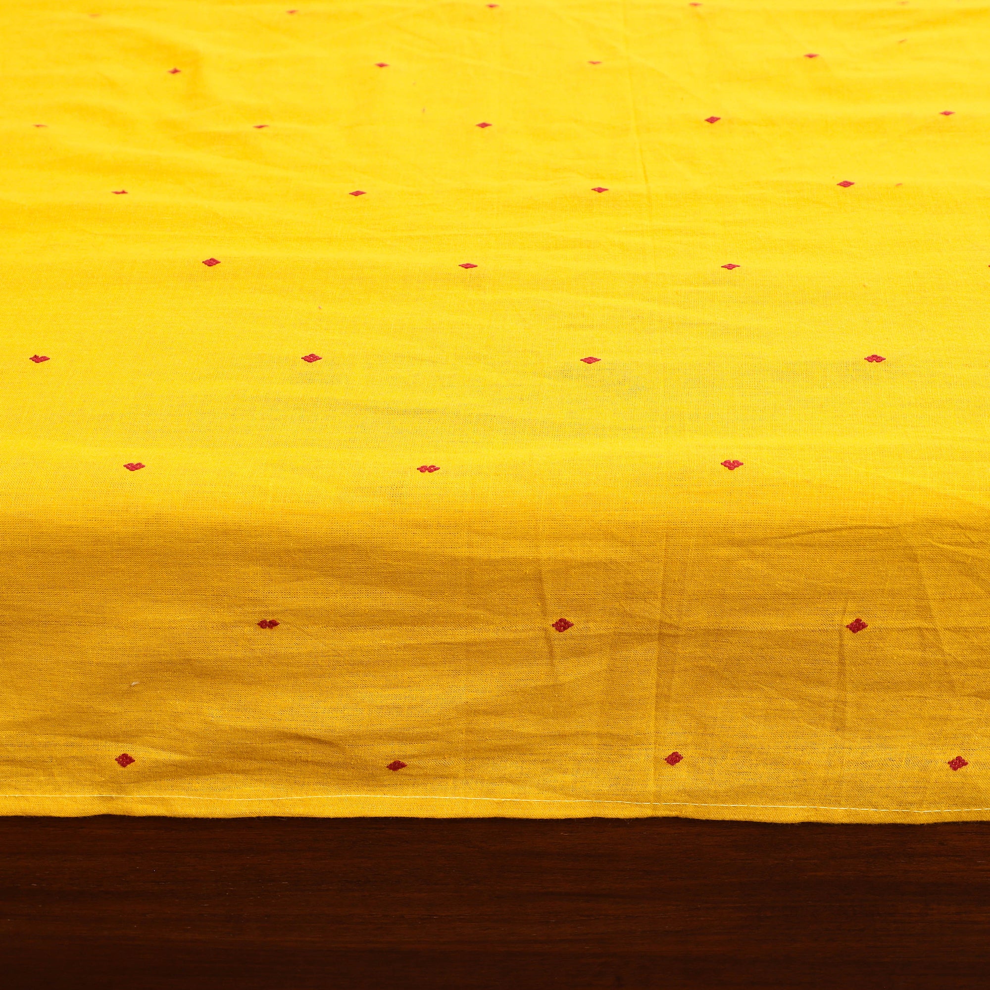Enhance your bedroom with this yellow patchwork cotton double jacquard bedsheet set, featuring patchwork and matching pillow covers. Made from cotton, this jacquard bed set combines style and comfort, bringing a touch of elegance to any space.