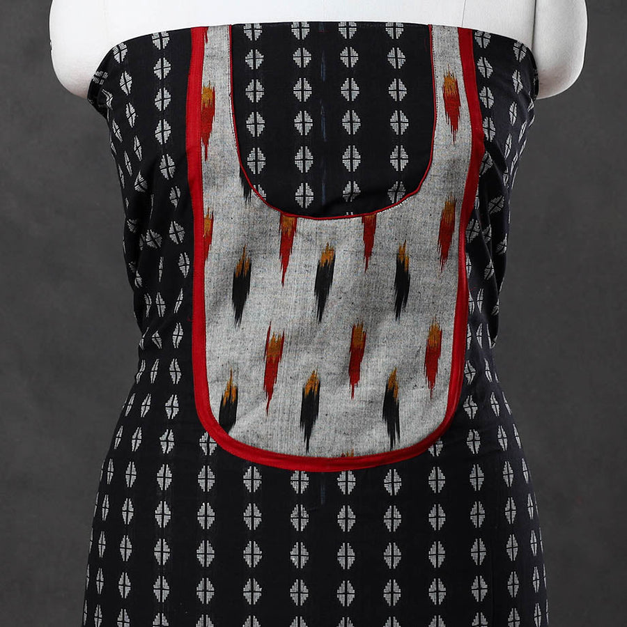 This black cotton jacquard kurta material with patchwork is handcrafted by skilled artisans, the kurta material showcases intricate jacquard weaving and patchwork designs, making it ideal for creating unique outfits. Comfortable, breathable, and stylish, this fabric is perfect for any occasion.
