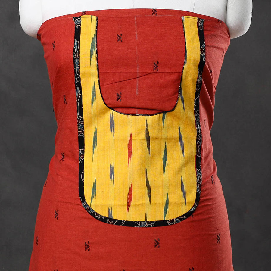This orange cotton jacquard kurta material with patchwork is handcrafted by skilled artisans, the kurta material showcases intricate jacquard weaving and patchwork designs, making it ideal for creating unique outfits. Comfortable, breathable, and stylish, this fabric is perfect for any occasion.