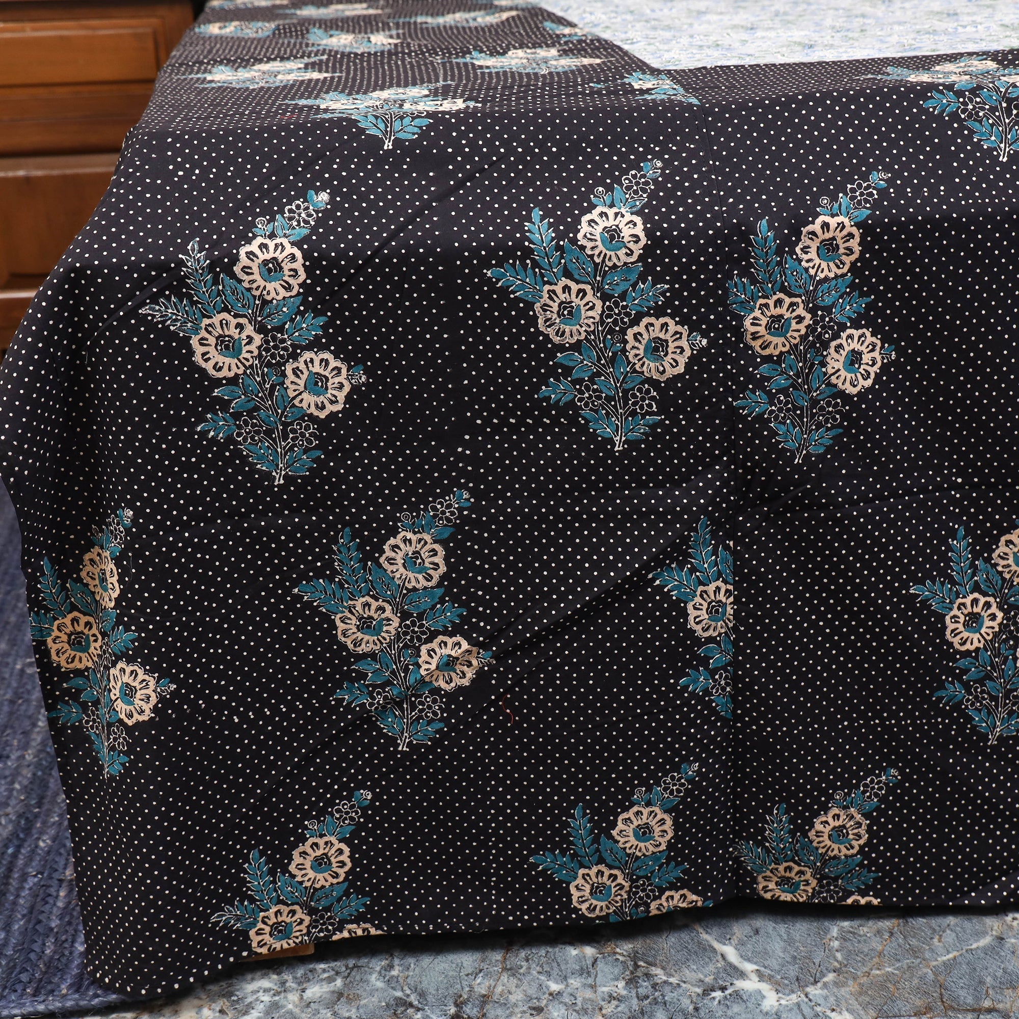 Black patchwork hand block sanganeri print bedsheet set showcases the charm of Indian textile traditions. Crafted from cotton, it offers lasting comfort and durability. The intricate hand block print adds a refined, artistic appeal to the fabric. The set includes one double bedsheet and two matching pillow covers, making it perfect for adding a handmade touch to your room decor.
