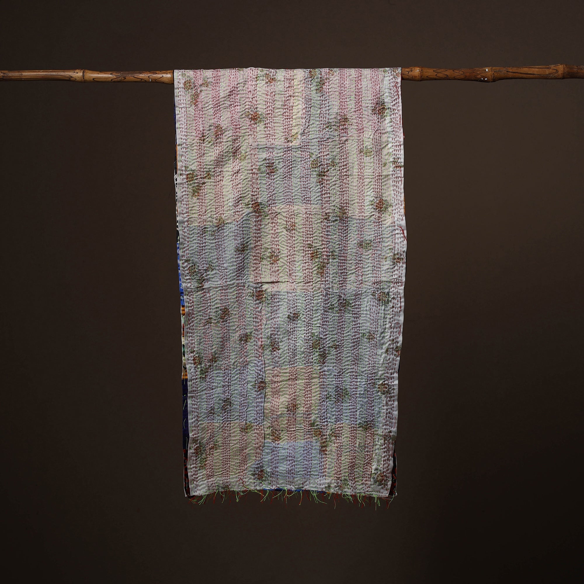 Patchwork Reversible Silk Bengal Hand Kantha Stitch Stole 07