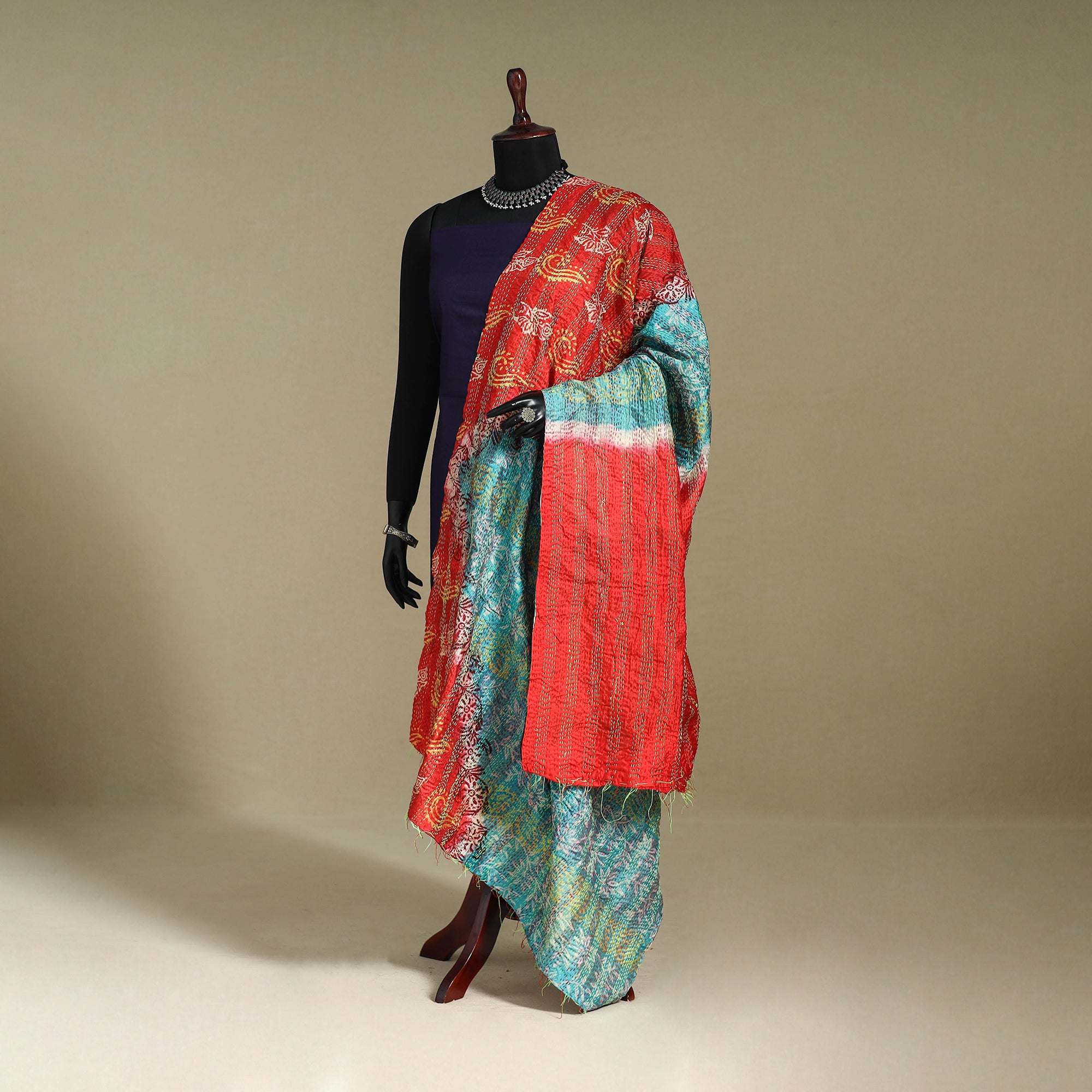 Multicolor - Patchwork Reversible Silk Bengal Kantha Work Dupatta 183