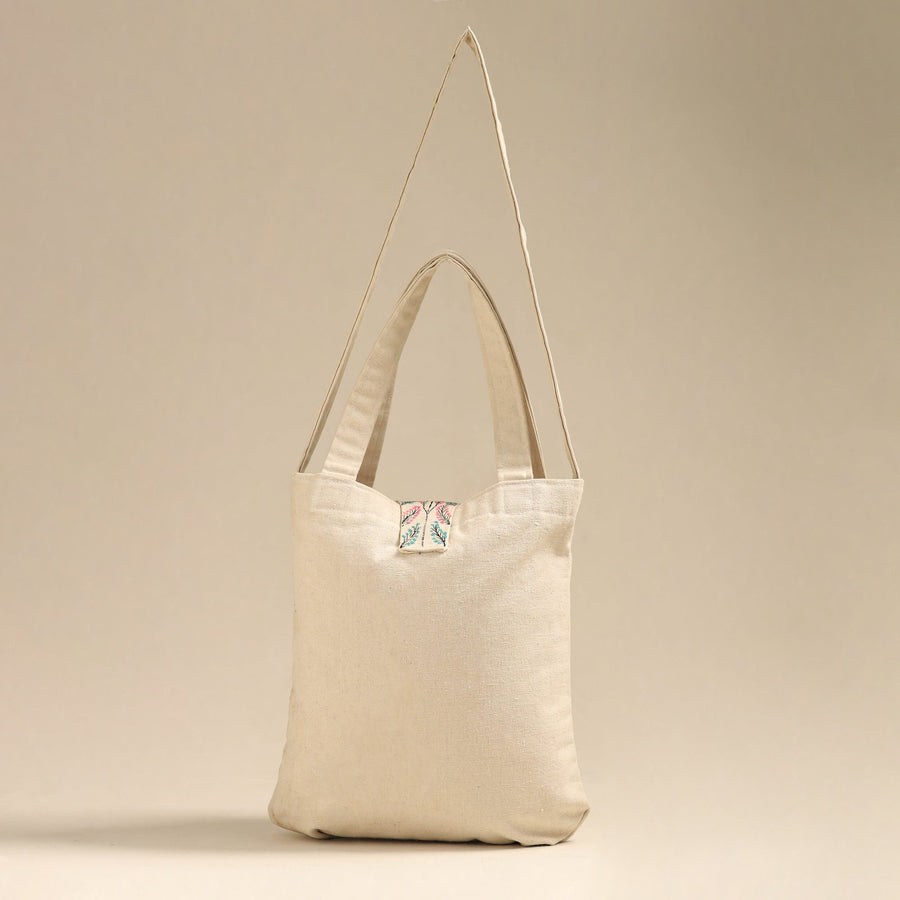 Step out in style with this beige pattachitra handpainted shoulder bag from Odisha. Crafted from canvas cotton adorned with intricate handpainted designs. It features a front pocket, inside zippered pocket and spacious compartments for all your essentials.