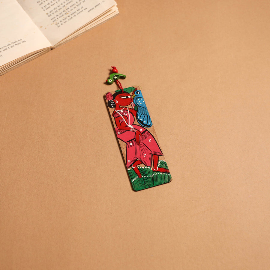 Handpainted bookmark crafted on fiberboard using acrylic colours. It showcases vibrant Patua art from West Bengal, known for its bold patterns, storytelling style, and nature-inspired motifs. This bookmark adds a touch of tradition to your reading and makes a meaningful keepsake for book lovers and art enthusiasts.