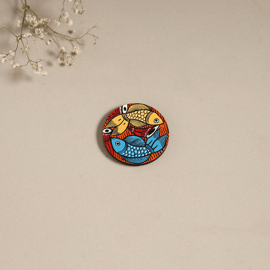 Bring home the charm of patua tradition with this hand-painted magnet. Made on durable fiberboard and enriched with vivid acrylic shades, it highlights the fine detailing of this folk artistry. A delightful accent for your fridge, wardrobe, or any magnetic corner of your home.