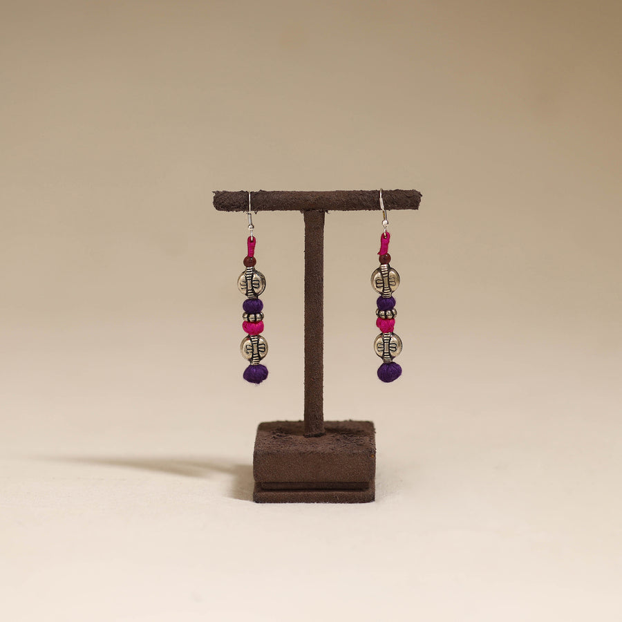 Patwa earrings made from thick weaves of thread with copper base oxidised metal beads (german silver polished) handcrafted by the master craftsmen Kailash Patwa. Patwa is a traditional thread craft that originated in Rajasthan, practiced primarily by the Patwa community and continues to thrive in parts of the state.