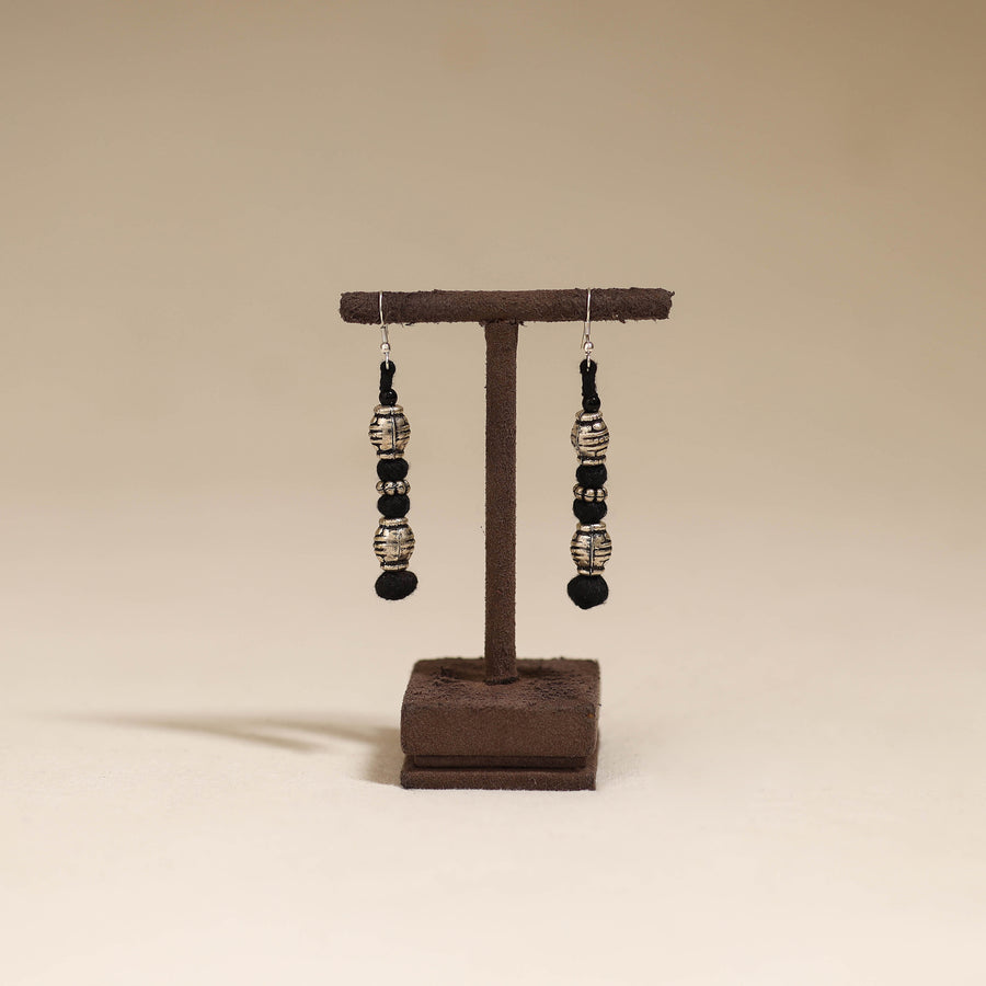 Patwa earrings made from thick weaves of thread with copper base oxidised metal beads (german silver polished) handcrafted by the master craftsmen Kailash Patwa. Patwa is a traditional thread craft that originated in Rajasthan, practiced primarily by the Patwa community and continues to thrive in parts of the state.