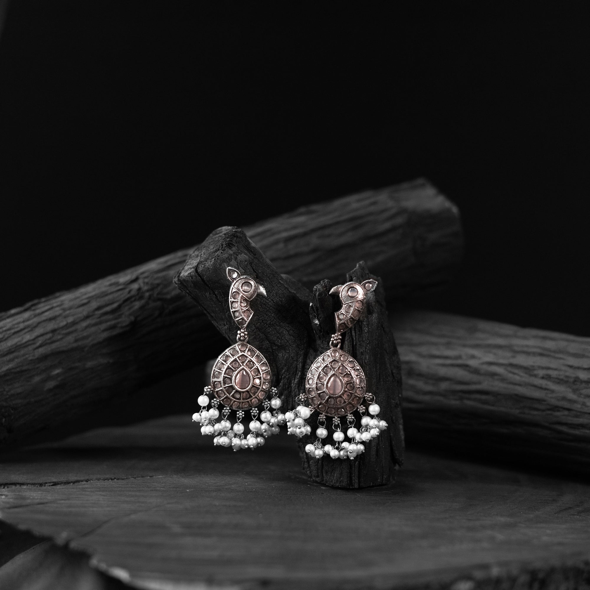 Oxidised handcrafted peach earrings made with a blend of metal, stones, pearls, beads, and fine detailing. Perfect for festive occasions, weddings, casual outings, office wear, or vacations. Their elegant black and silver tones pair beautifully with everything from casual jeans and flowy dresses to chic office ensembles. A meaningful gift for mother, sister, wife, or girlfriend adding a beautiful touch of tradition to every moment.