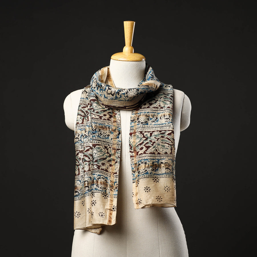 • Pedana Block Print Chanderi Silk Kalamkari Stole