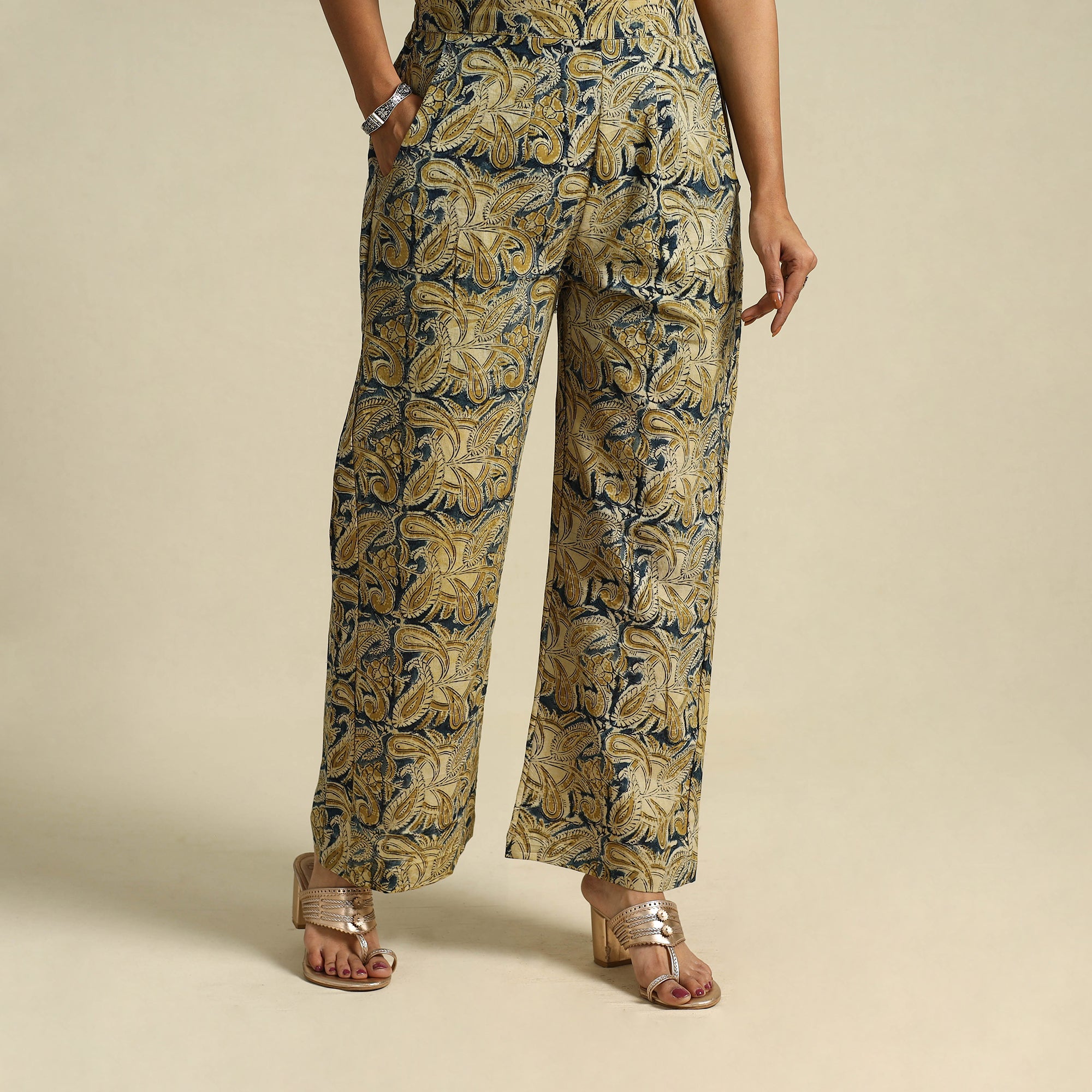 Inspired by the heritage craft of Pedana, this beige kalamkari palazzo is hand block printed using natural dyes on soft cotton. Designed for comfort, it features an elastic waistband and functional side pockets. A perfect blend of tradition and practicality, it pairs effortlessly with your favourite kurta for everyday and festive wear.