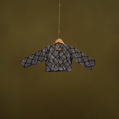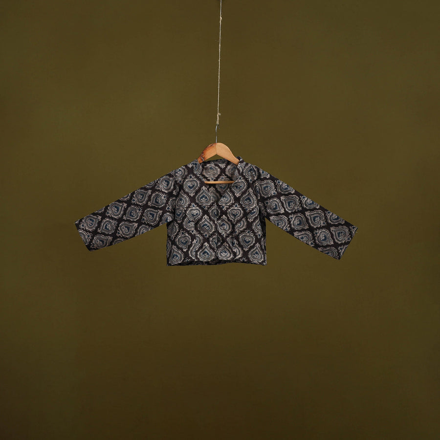 Pedana kalamkari pure cotton readymade blouse features traditional hand block printed motifs created by skilled artisans. Hand-carved wooden blocks are dipped in natural dyes and pressed onto the fabric to form kalamkari pattern. Designed with a front hook closure, this blouse pairs well with both everyday and occasion sarees.