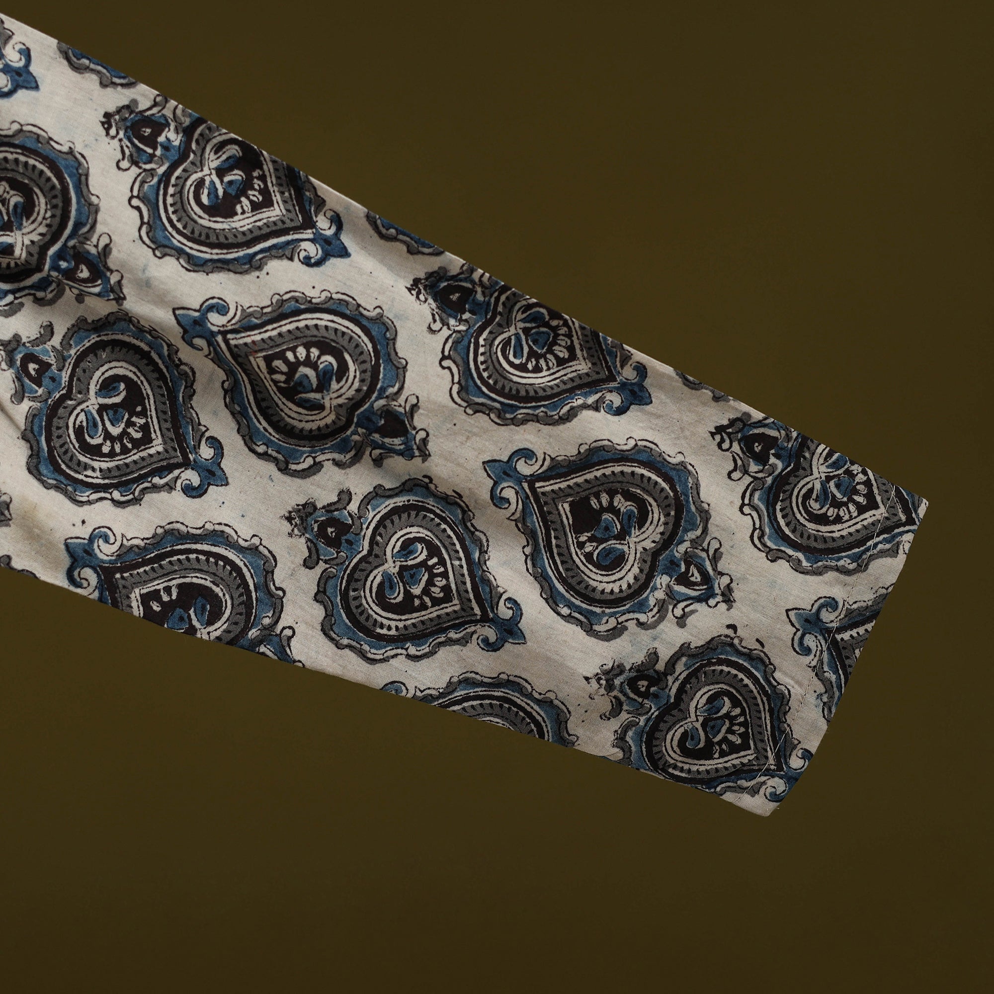 Each piece is hand block printed and dyed using natural colors over a slow process of 15–20 days. As a result, you may notice slight variations in color, mild pigment smudges or irregular dye patterns these are not defects. They’re gentle marks of authenticity, proudly bearing the touch of human hands, heritage, and nature’s own palette. Wear them like a signature, because no two pieces are ever alike.