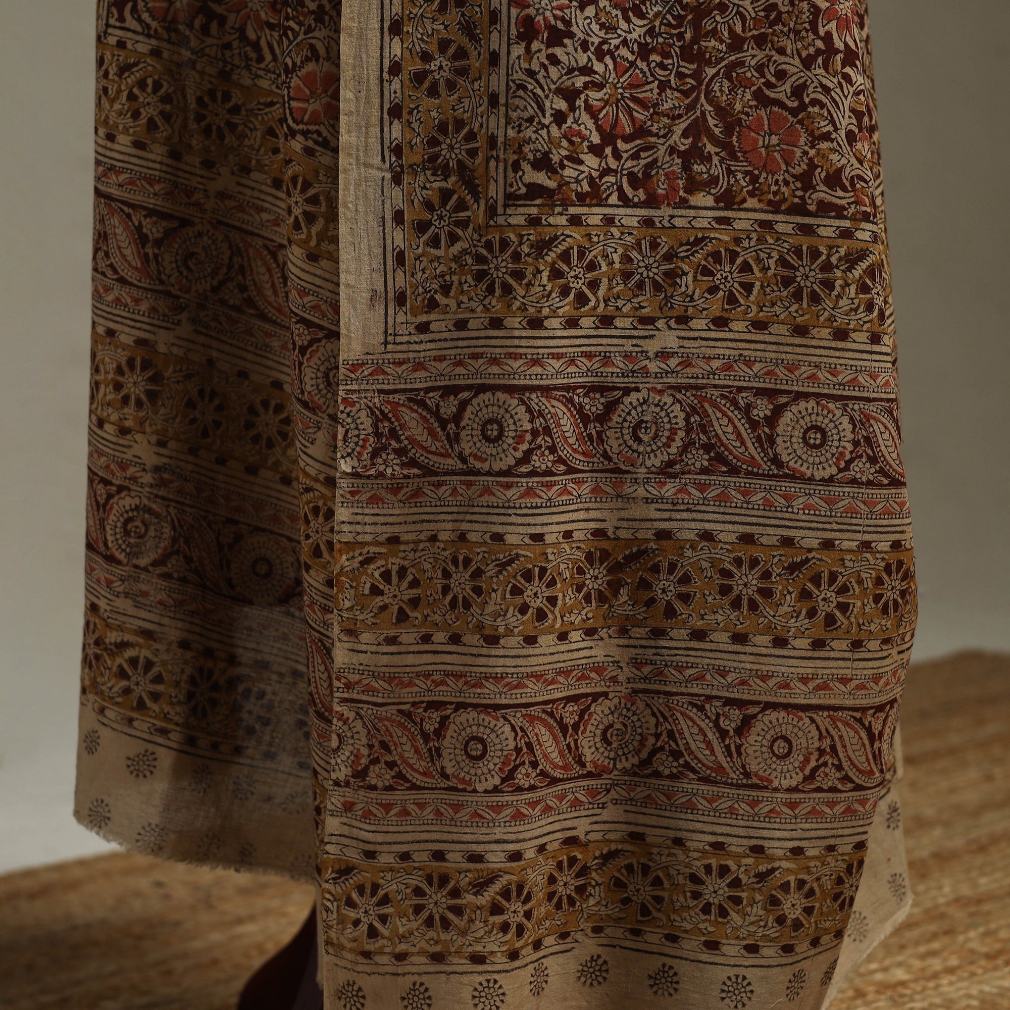 Maroon - Pedana Block Print Natural Dyed Cotton Kalamkari Dupatta 04