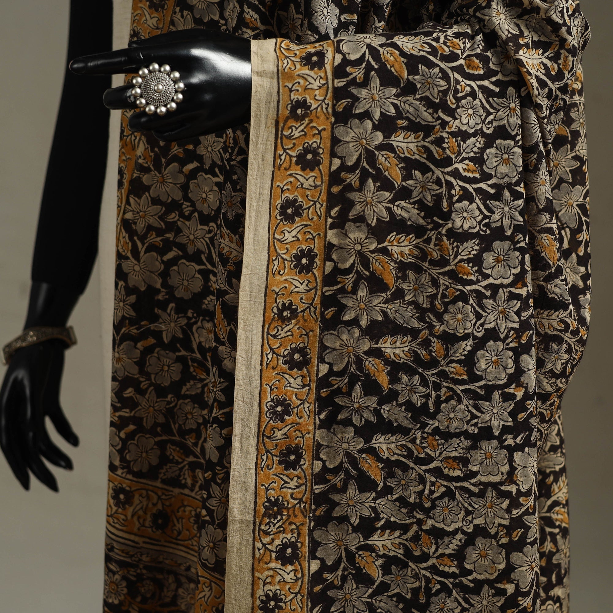Kalamkari is a type of hand-painted or printed cotton fabric produced in Andhra Pradesh. This is a traditional printing method on cotton fabrics using natural materials without adding chemicals to cotton fabrics.