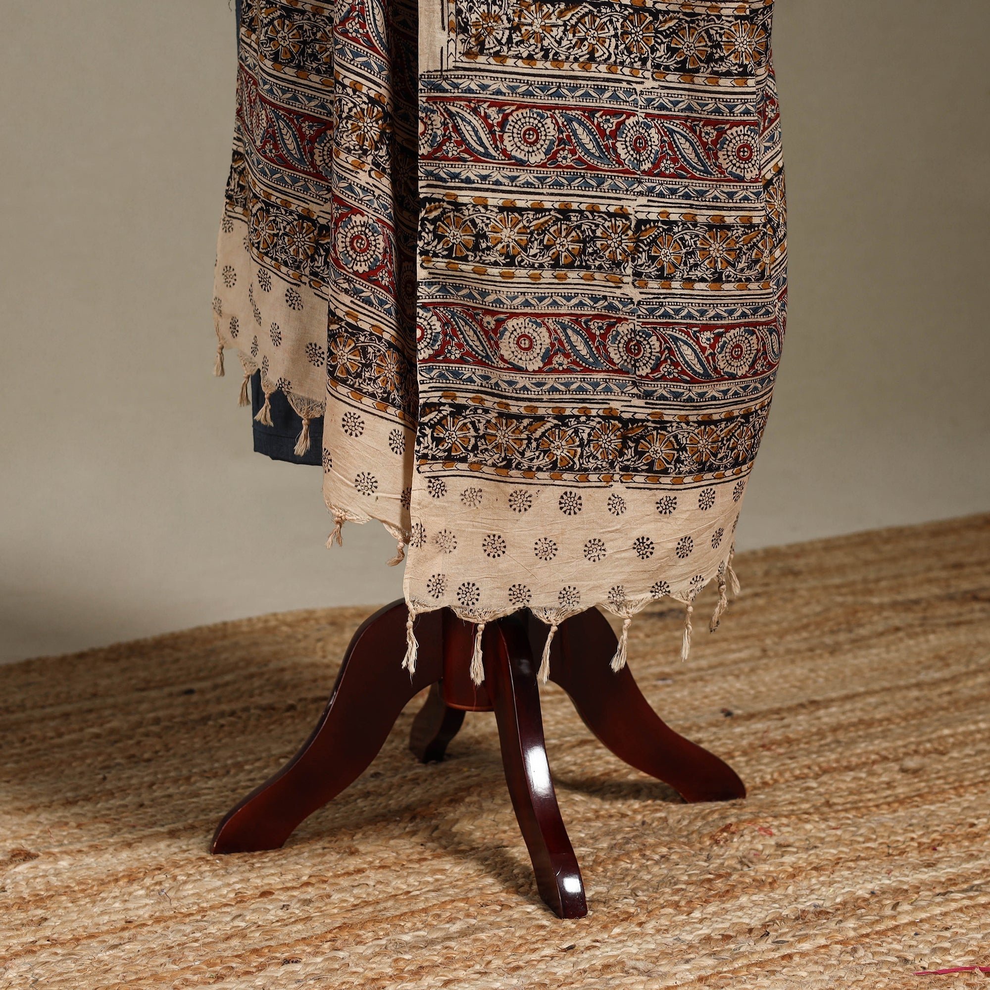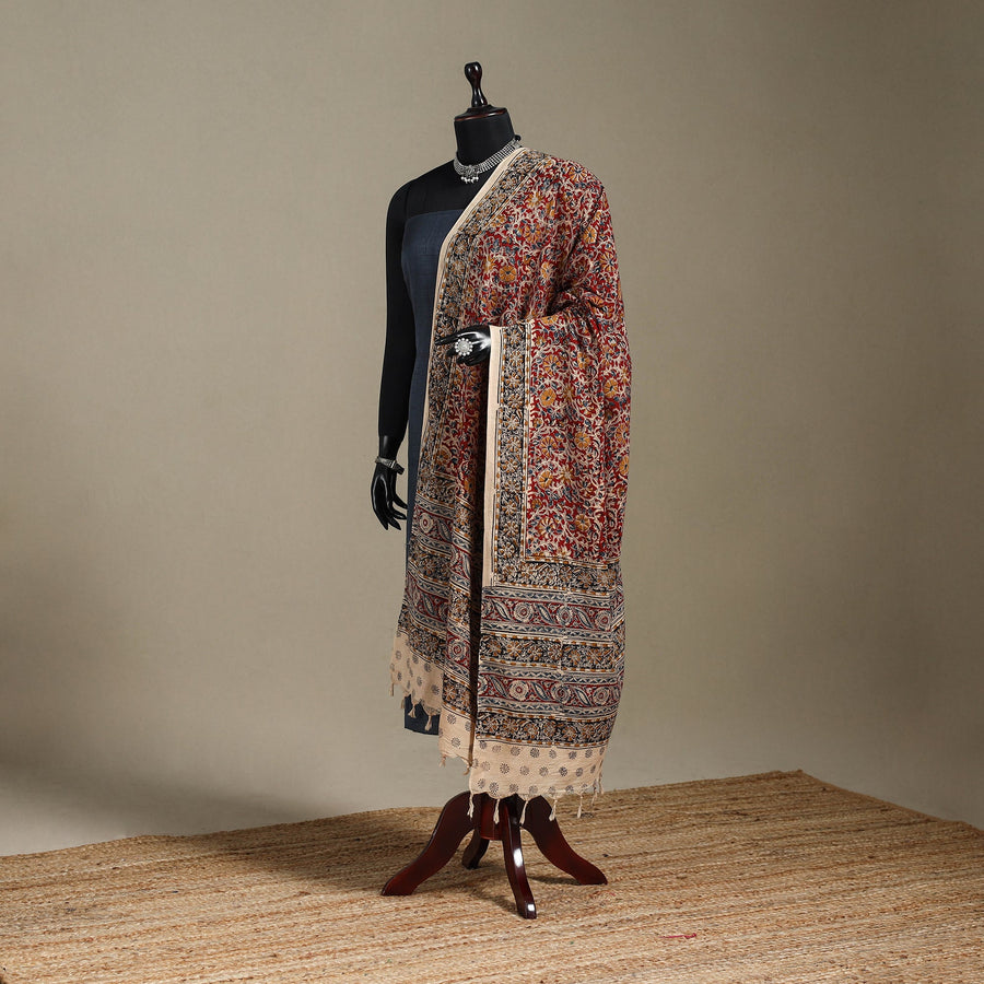 Red - Pedana Block Print Natural Dyed Cotton Kalamkari Dupatta 05