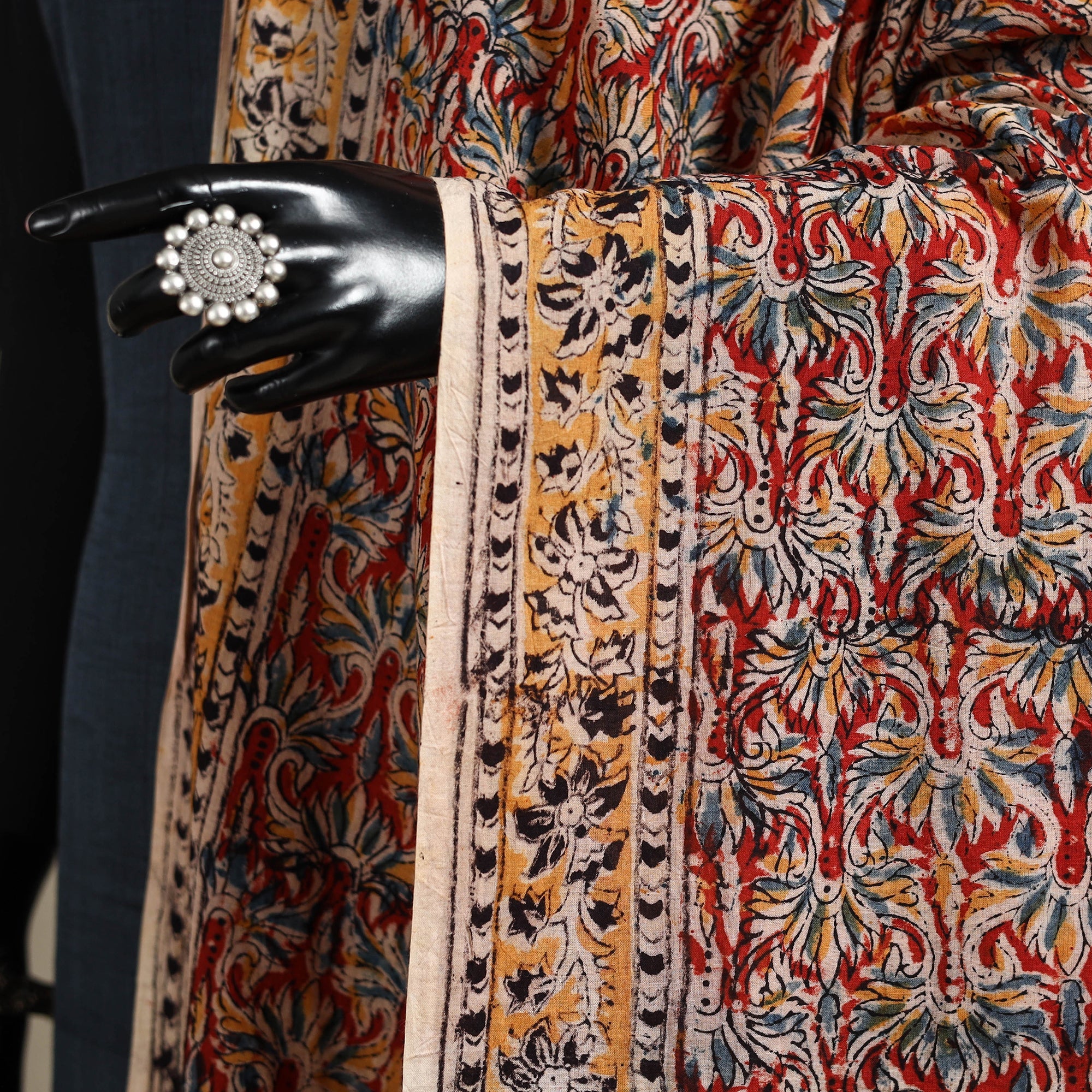 Kalamkari is a type of hand-painted or printed cotton fabric produced in Andhra Pradesh. This is a traditional printing method on cotton fabrics using natural materials without adding chemicals to cotton fabrics.