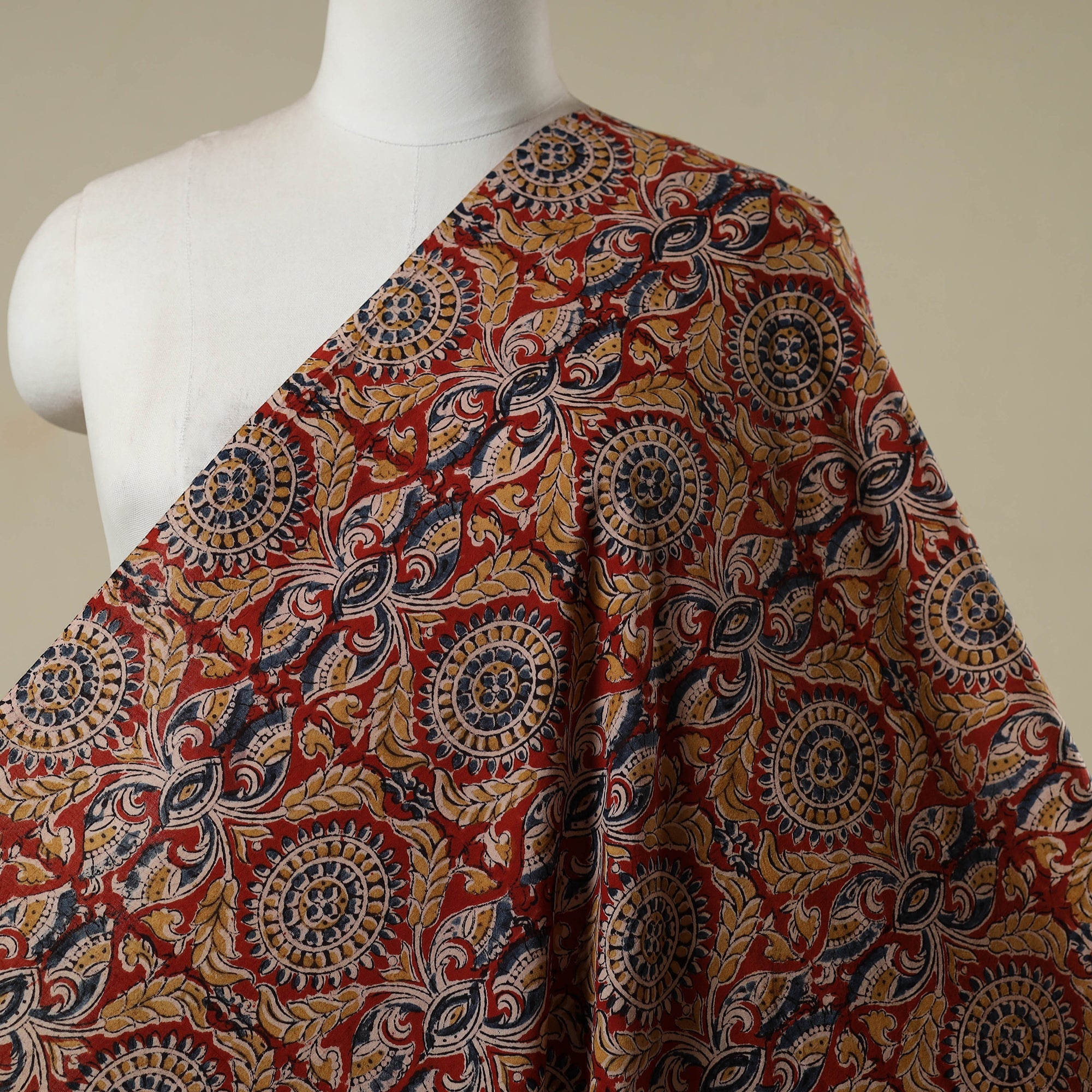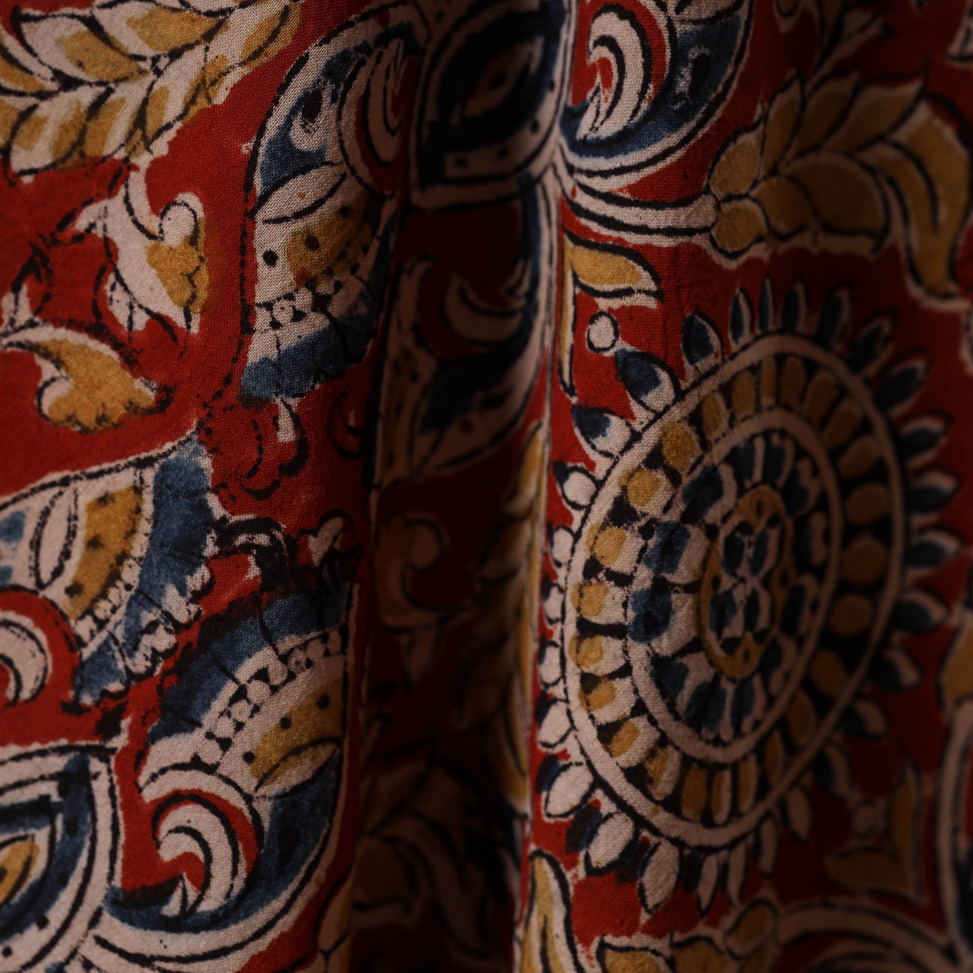Red - Pedana Block Print Natural Dyed Cotton Kalamkari Fabric 05