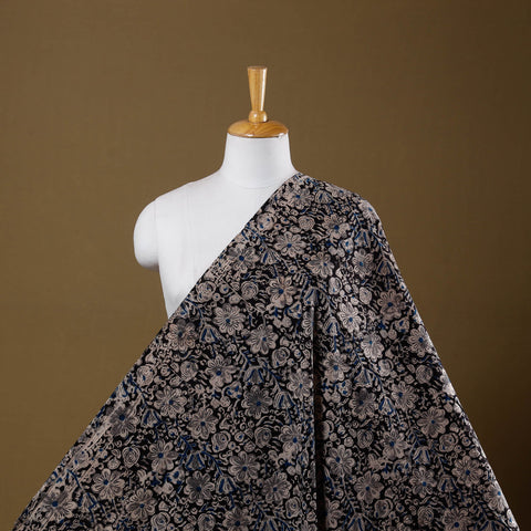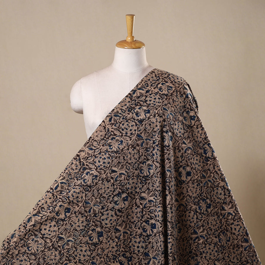 Kalamkari block-printed pure cotton fabric is created using one of the earliest and most intricate printing techniques. Skilled artisans use hand-carved wooden blocks dipped in natural dyes to form detailed Kalamkari motifs. Made in Pedana, Andhra Pradesh, this fabric is suitable for stitching garments, dupattas or home decor accents.