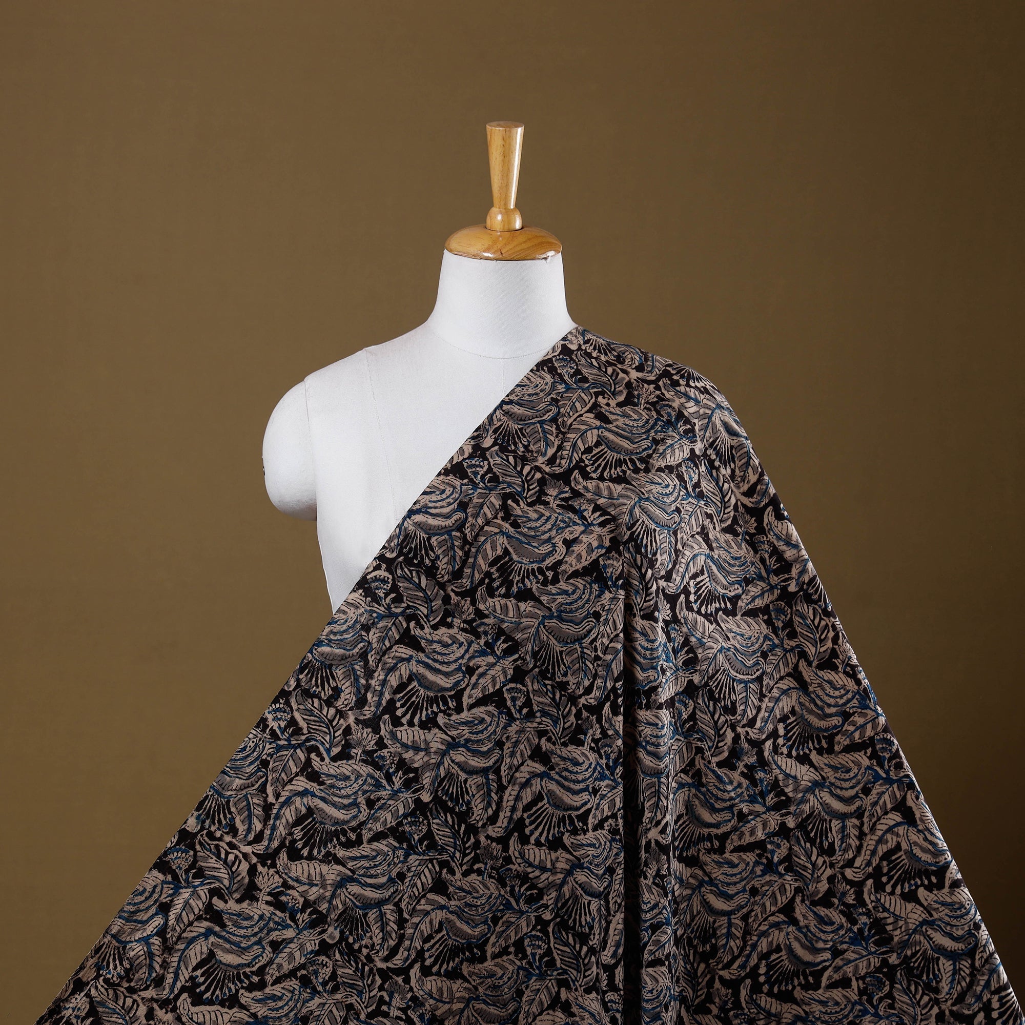 Kalamkari block-printed pure cotton fabric is created using one of the earliest and most intricate printing techniques. Skilled artisans use hand-carved wooden blocks dipped in natural dyes to form detailed Kalamkari motifs. Made in Pedana, Andhra Pradesh, this fabric is suitable for stitching garments, dupattas or home decor accents.