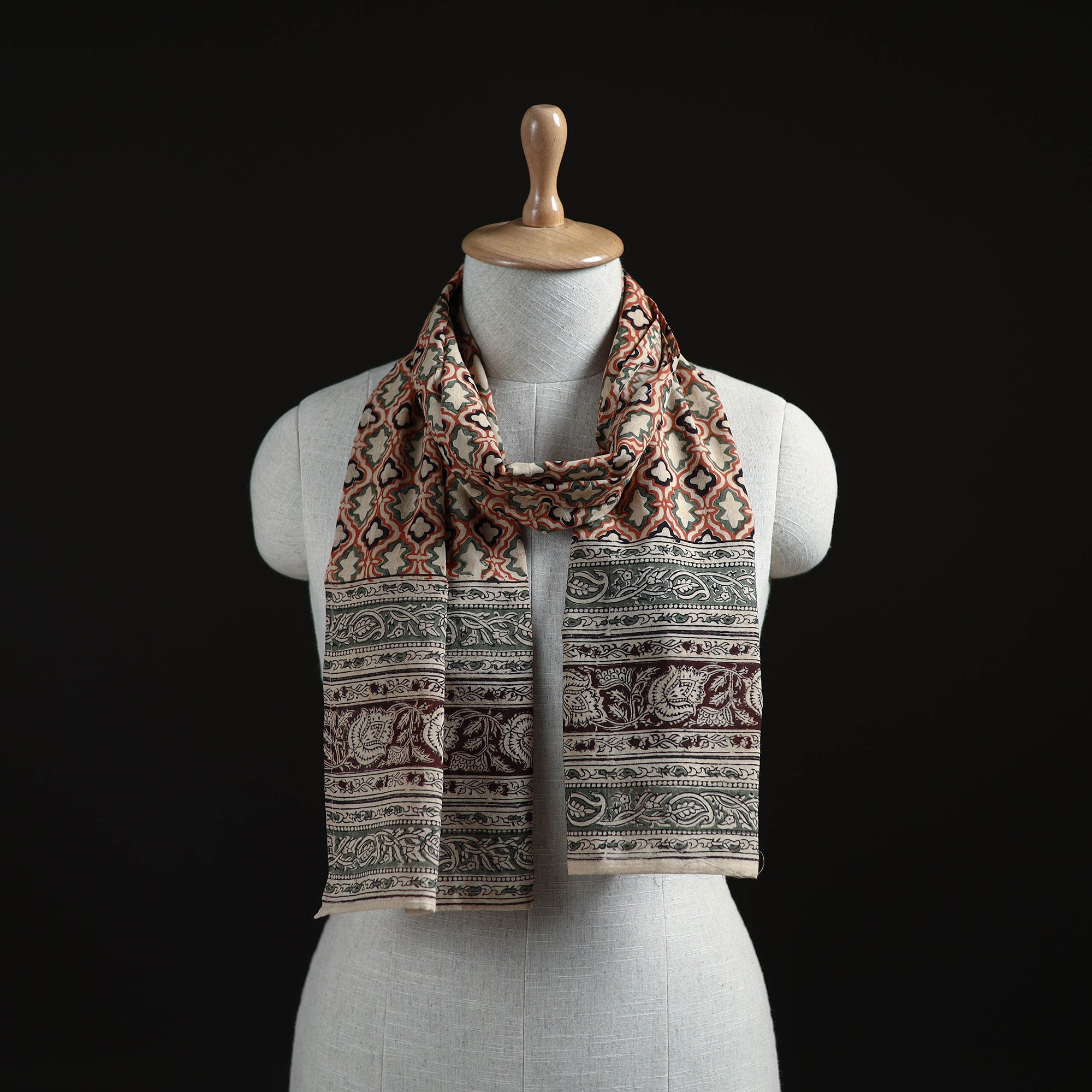| Material | Pedana block print natural dyed cotton kalamkari stole is created by master artisan Pitchuka Srinivas from Pedana, in the Krishna district of Andhra Pradesh, where this traditional block printing art has been practised for generations. Belonging to the Machilipatnam style, intricate patterns are printed using finely carved wooden blocks. Known for its precision and detailing, each piece can be styled effortlessly with both ethnic wear and everyday outfits. |