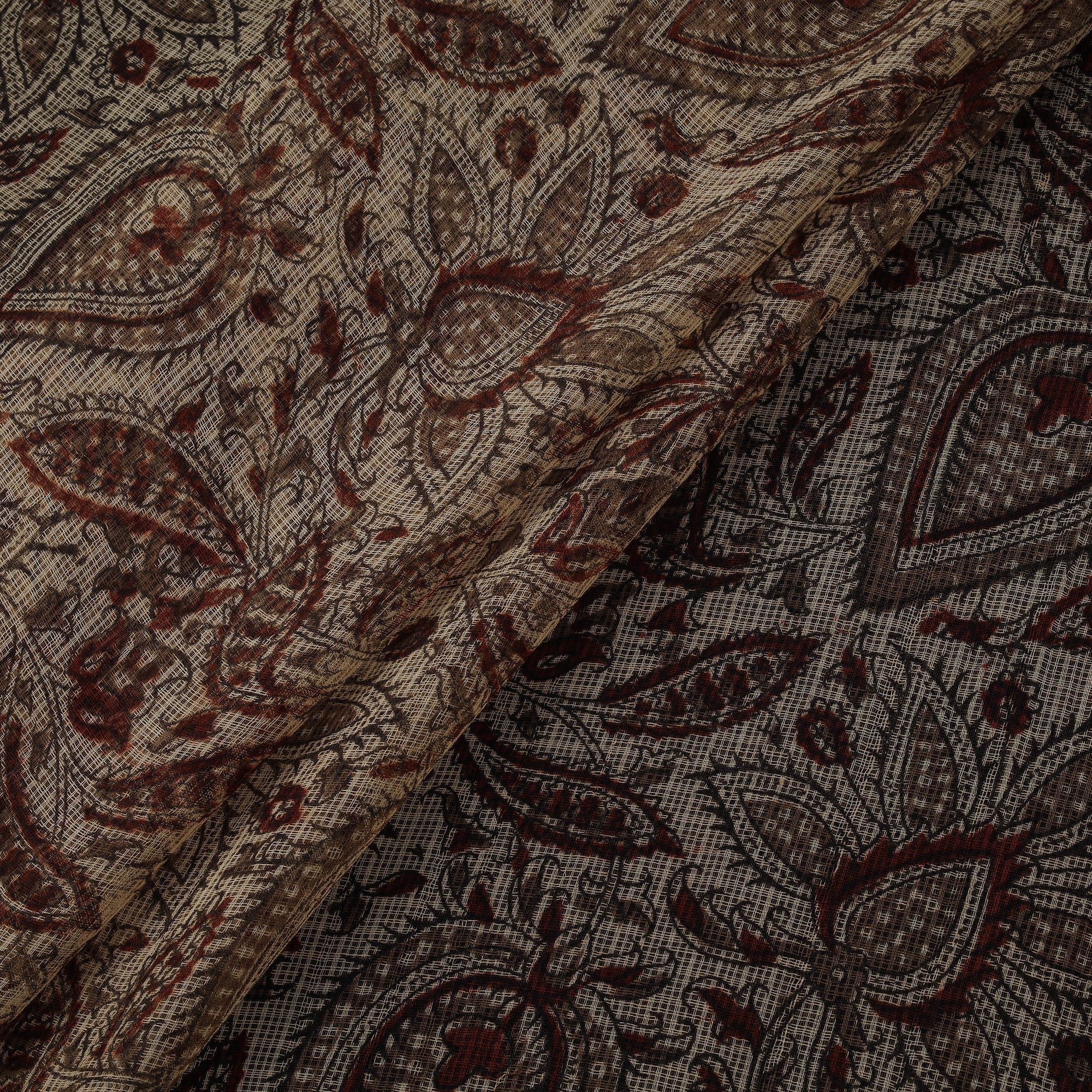 Pedana Hand Block Print Natural Dyed Kota Doria Cotton Kalamkari Fabric 11