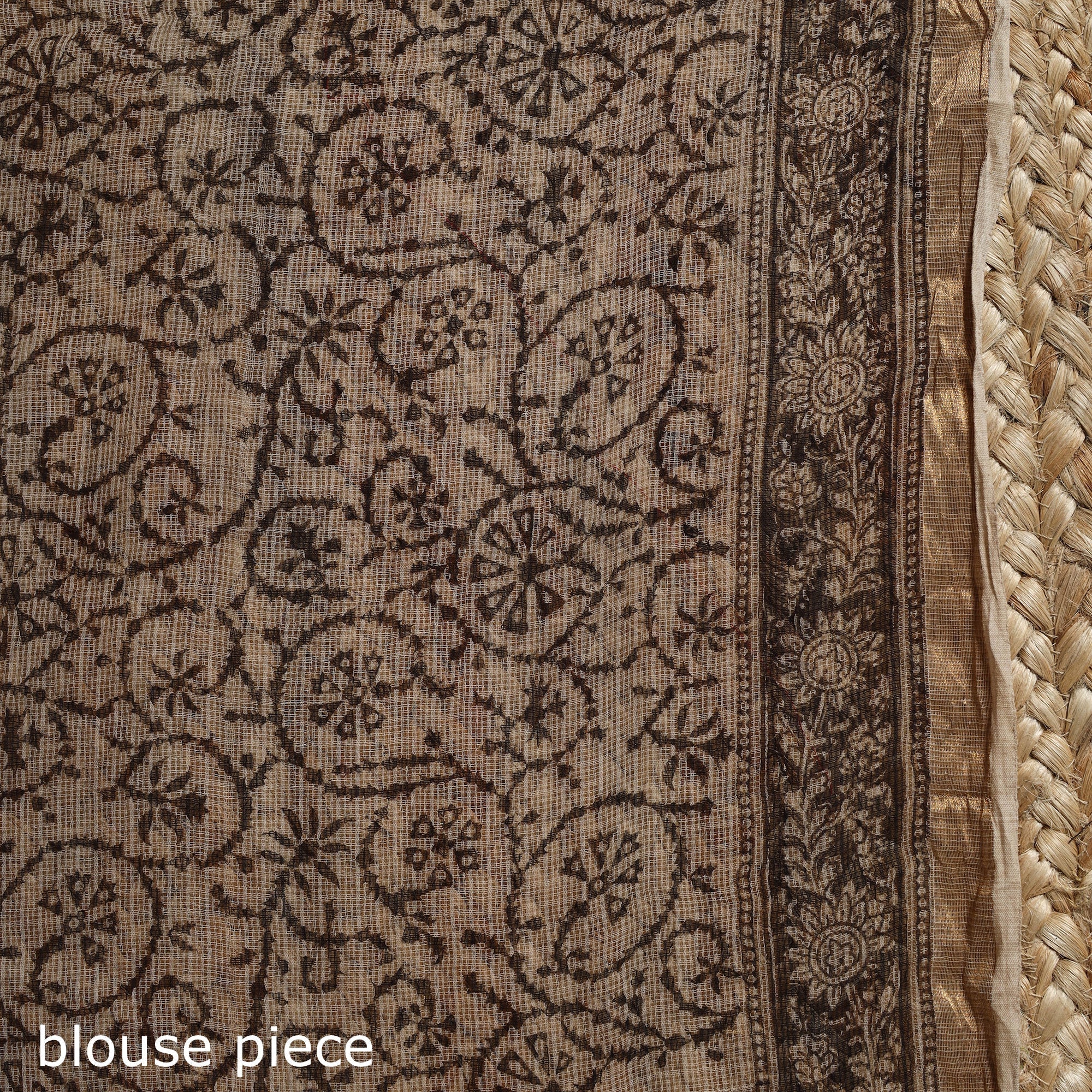 | Material | Brown pedana hand block print natural dyed kota doria kalamkari saree is a lovely mix of tradition and daily elegance. Made using the Kalamkari art form that is around 3,000 years old, this saree keeps an ancient Indian craft alive. The detailed hand block prints and natural dyes show the skill of artisans from Pedana. Kota doria is an age-old Indian textile produced in the Kota district of Rajasthan. The Doria or the threads are finely interweaves to make the check patterns. Its lightweight and sheer texture giving an exquisite grace and elegance of its own., whether for festive occasions, family gatherings or special moments. |