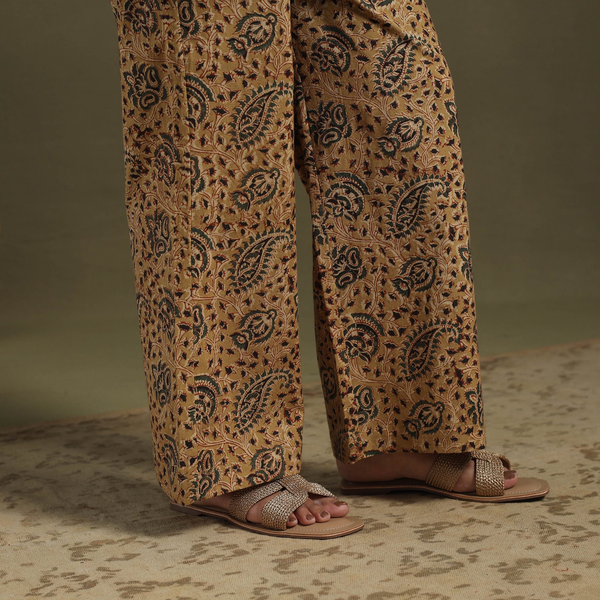 Stay stylish in our brown kalamkari co-ord set, crafted using the traditional hand block printing technique from Pedana. Made from naturally dyed, breathable cotton, this two-piece outfit features an elasticated waist palazzo with pockets and a chic top. Each piece reflects the rich heritage of kalamkari artistry. Whether you're lounging at home, stepping out for brunch, or heading to a casual gathering, it blends comfort, culture, and modern style seamlessly.