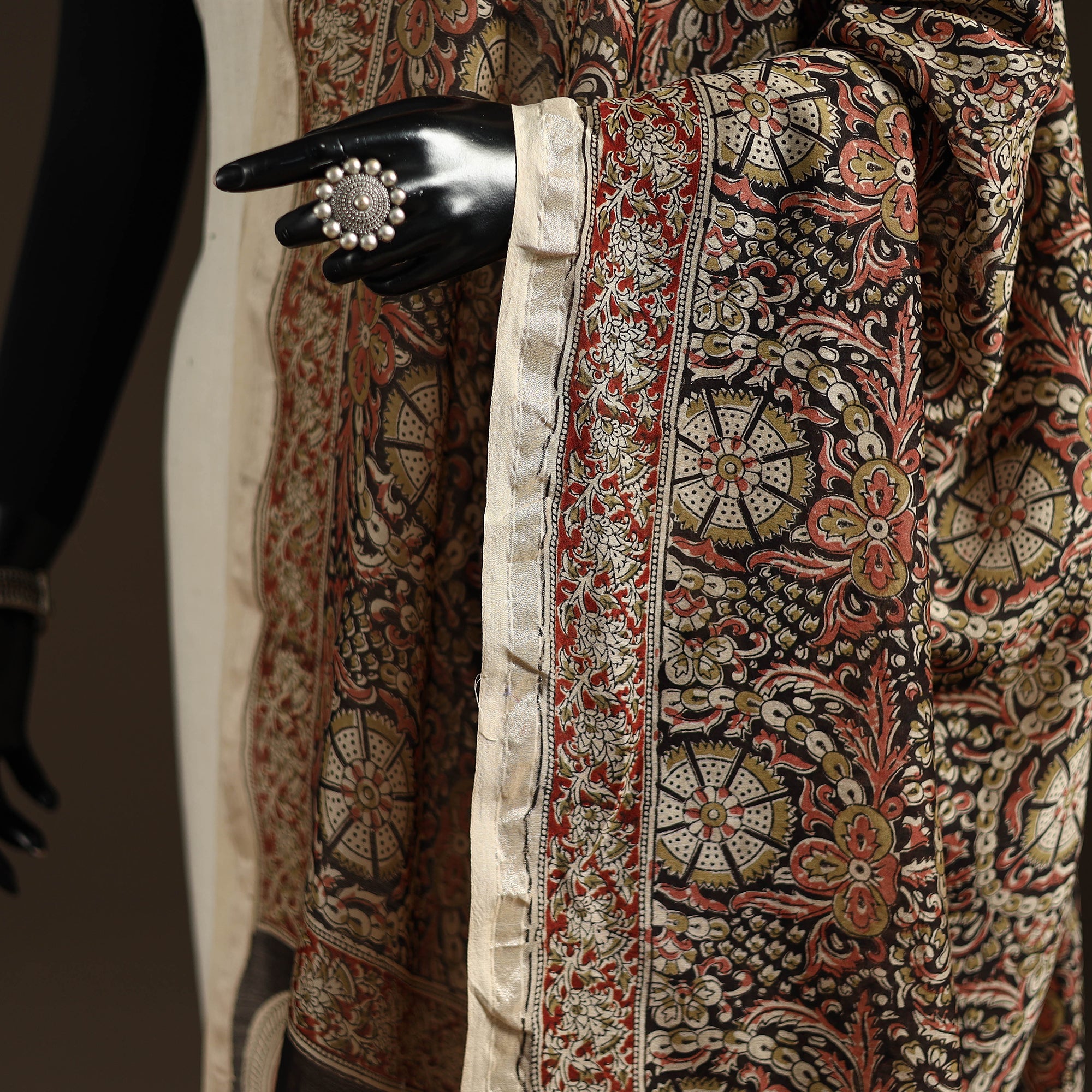 Kalamkari is a type of hand-painted or printed cotton fabric produced in Andhra Pradesh. This is a traditional printing method on cotton fabrics using natural materials without adding chemicals to cotton fabrics.