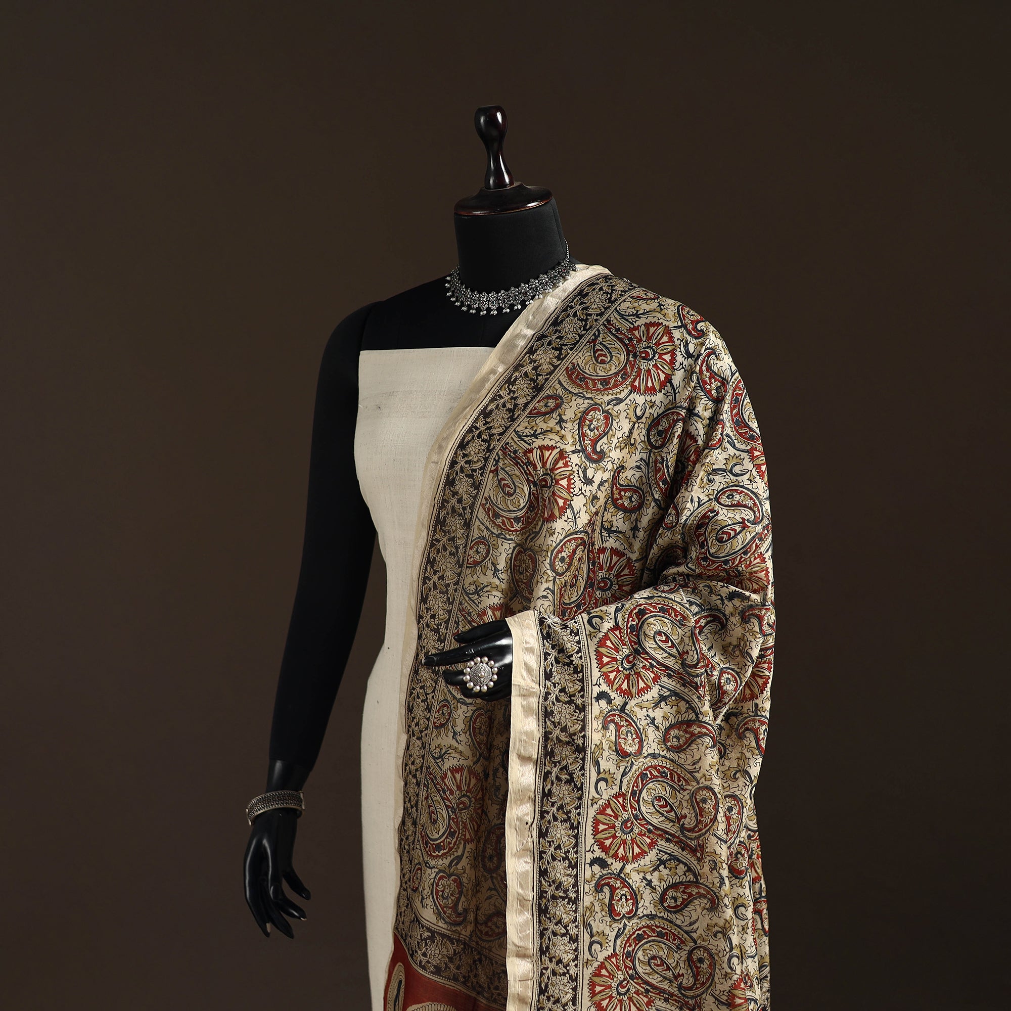 This block printed kalamkari chanderi silk cotton dupatta is crafted in Pedana by skilled artisans using traditional wooden blocks. The intricate motifs are created with natural dyes, reflecting the authentic Kalamkari tradition of the region. Known for its fine detailing and rich heritage value, this dupatta pairs effortlessly with ethnic outfits, office wear, festive gatherings, and cultural occasions.