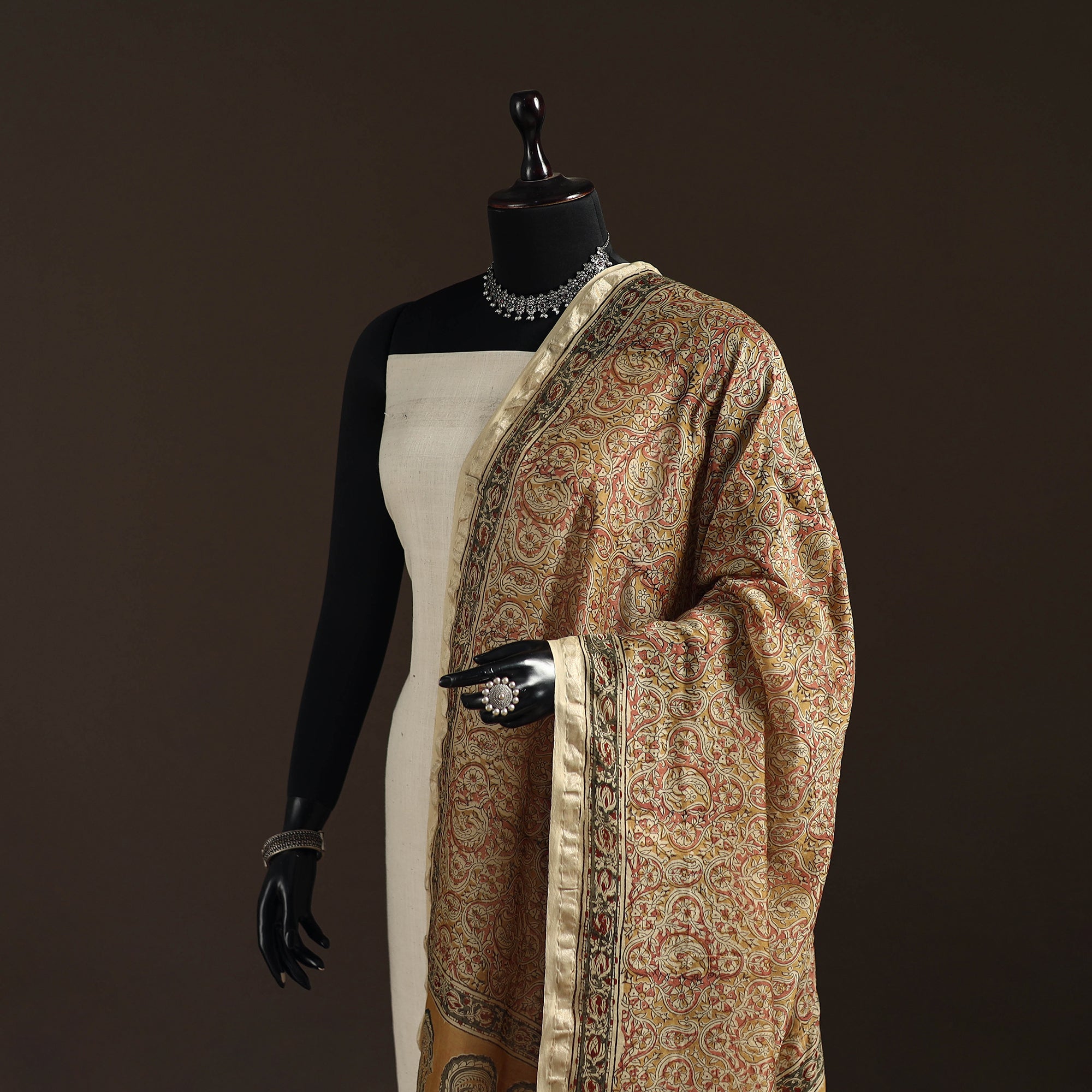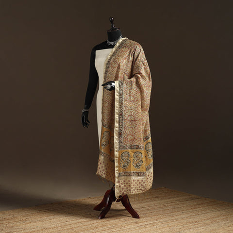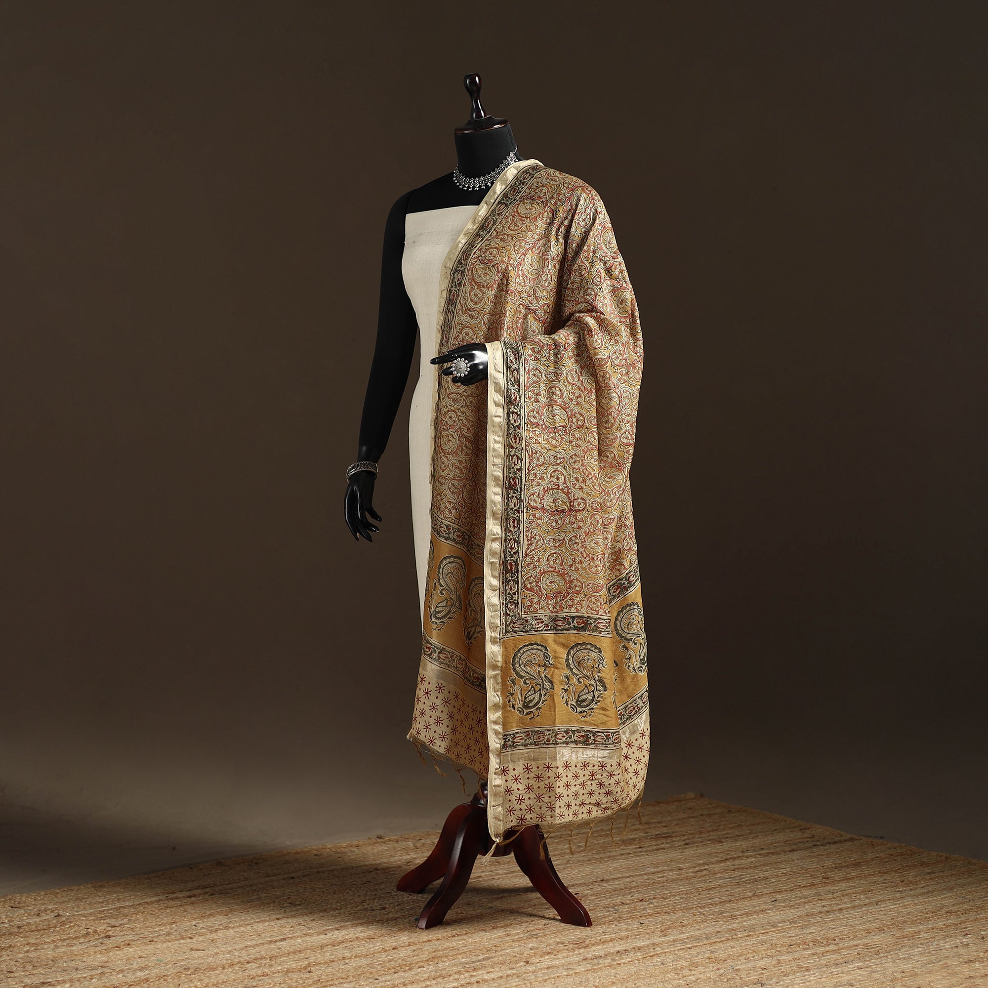 This block printed kalamkari chanderi silk cotton dupatta is crafted in Pedana by skilled artisans using traditional wooden blocks. The intricate motifs are created with natural dyes, reflecting the authentic Kalamkari tradition of the region. Known for its fine detailing and rich heritage value, this dupatta pairs effortlessly with ethnic outfits, office wear, festive gatherings, and cultural occasions.